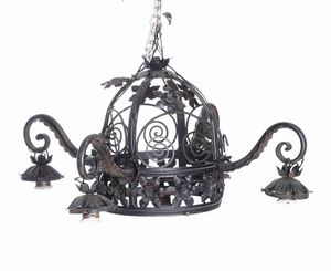 Lampadario a quattro luci in metallo. XX secolo