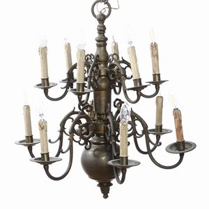 Lampadario in ottone ad undici luci. Olanda, XIX secolo