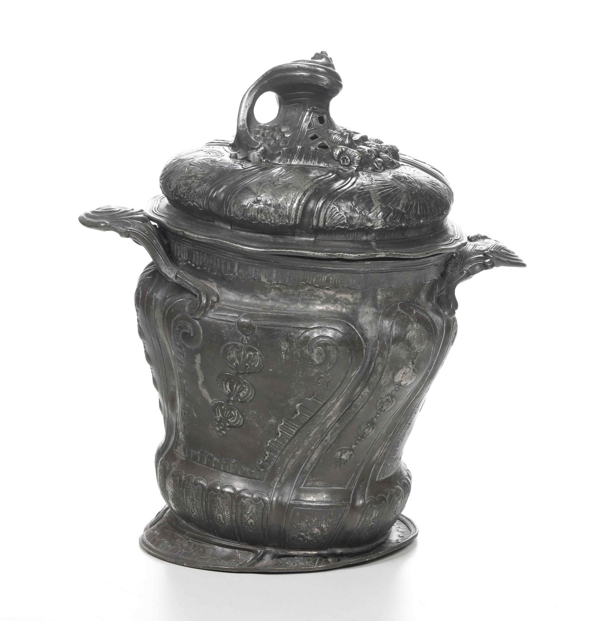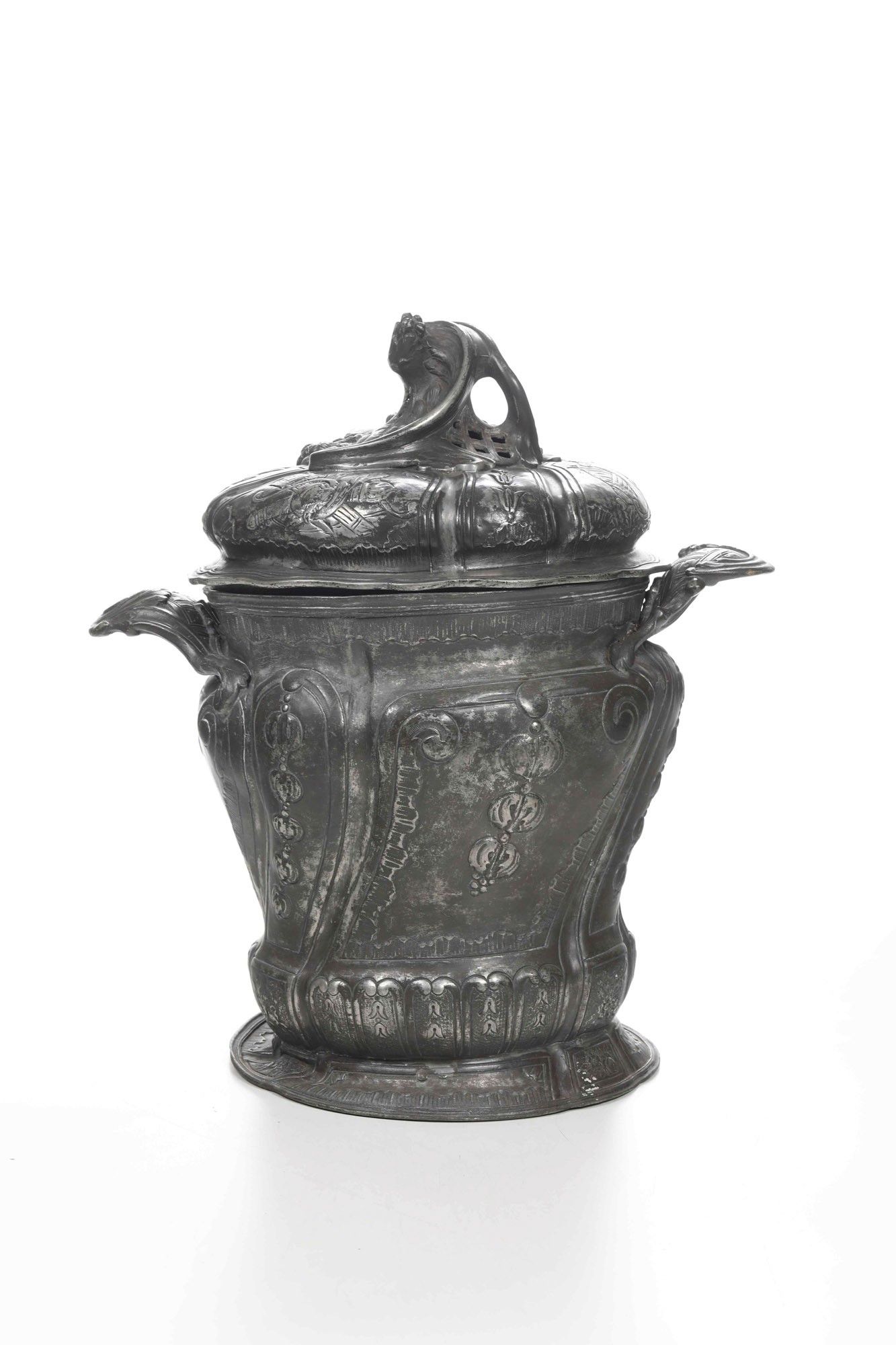 Braciere in peltro a forma di vaso con coperchio, XVIII secolo