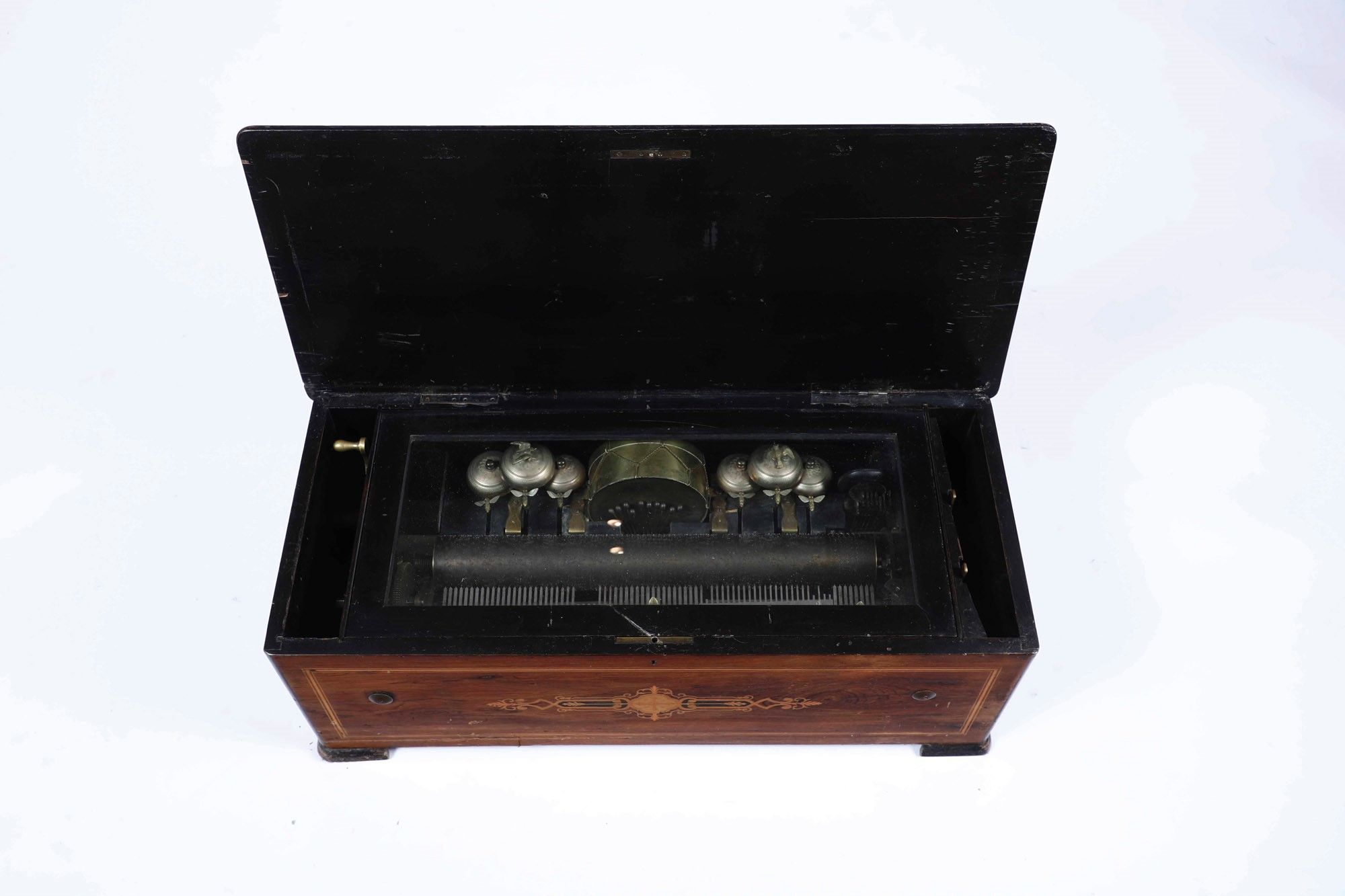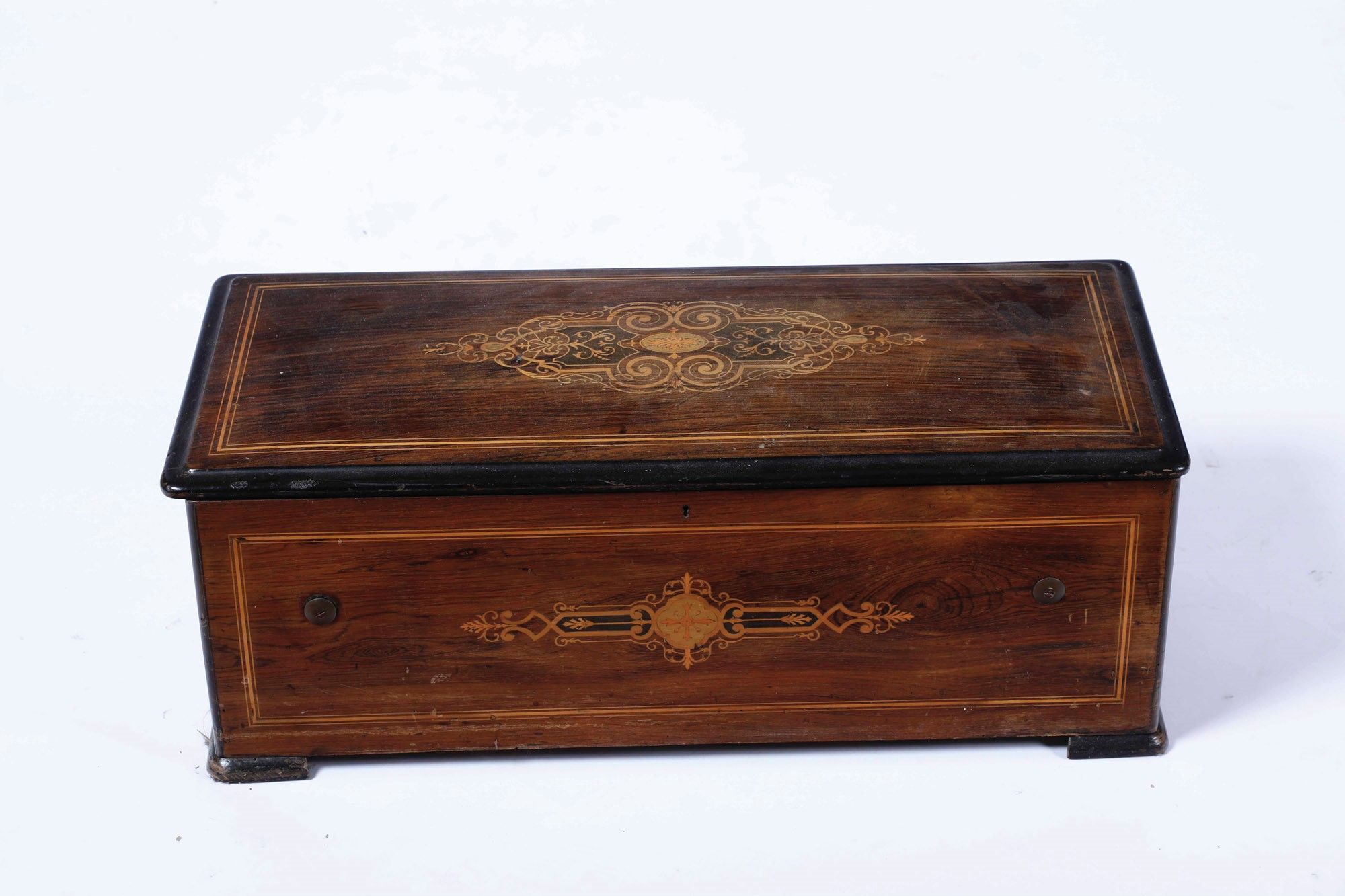 Carillon entro scatola in legno intarsiato
