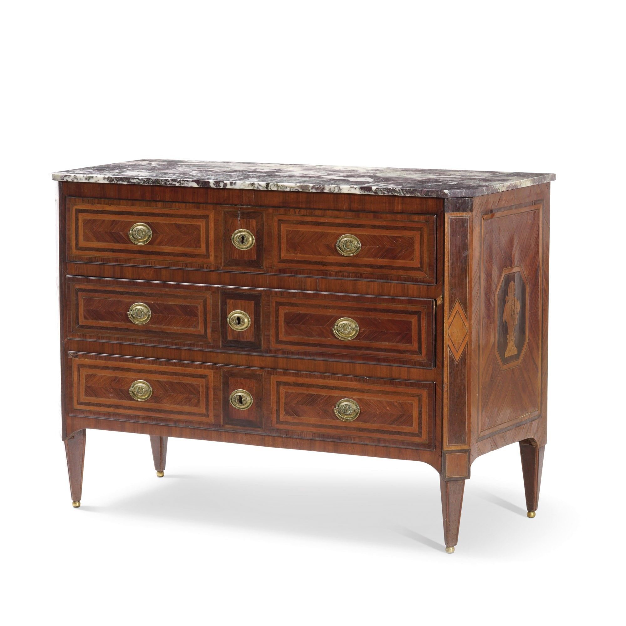 Cassettone Luigi XVI lastronato ed intarsiato, XVIII-XIX secolo