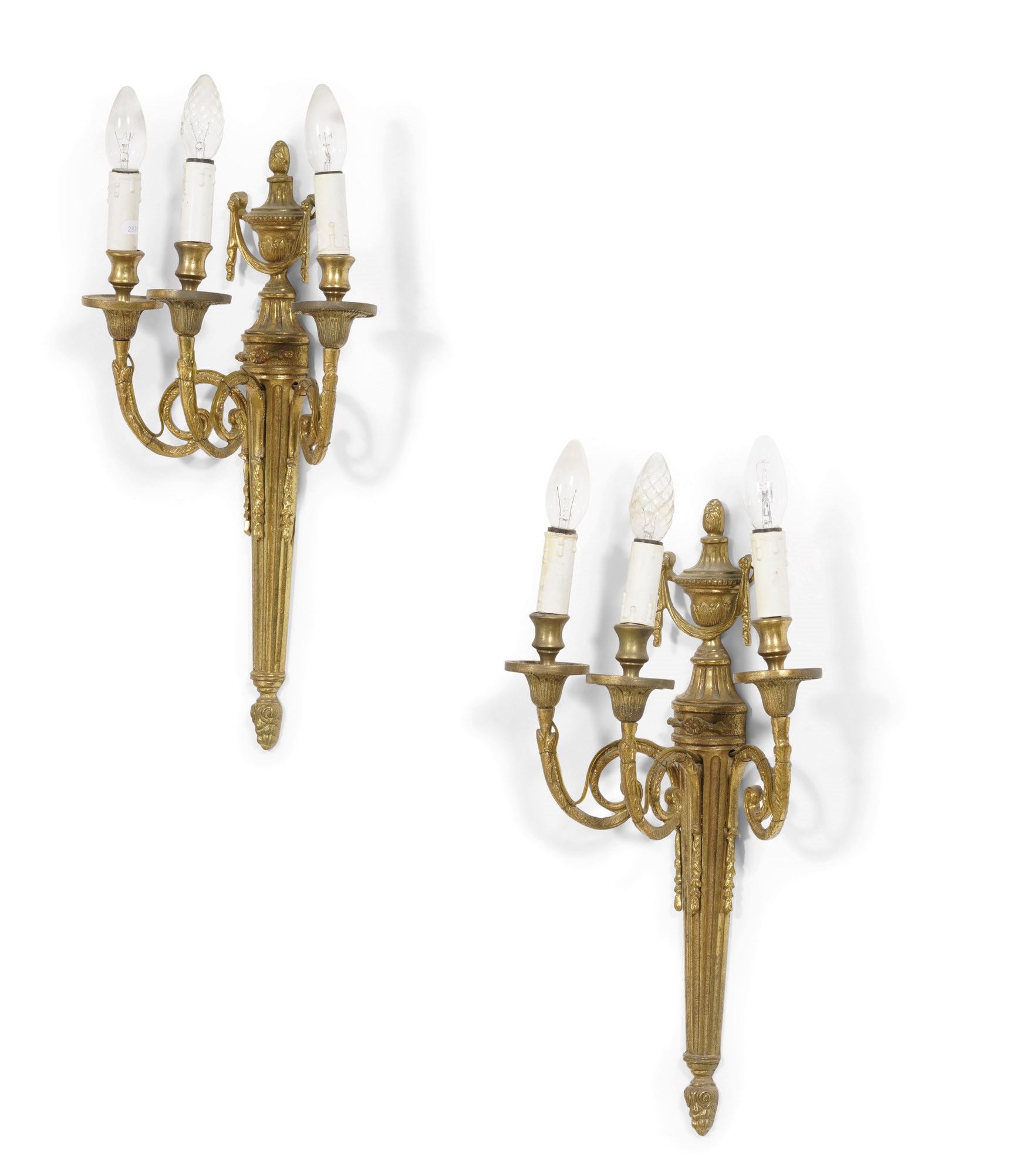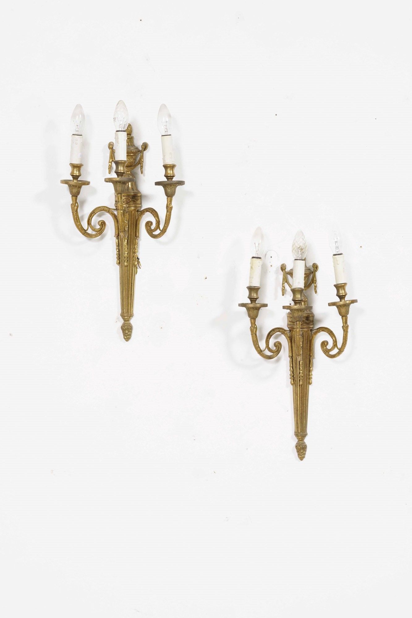 Coppia di appliques in bronzo dorato a 5 luci. XX secolo