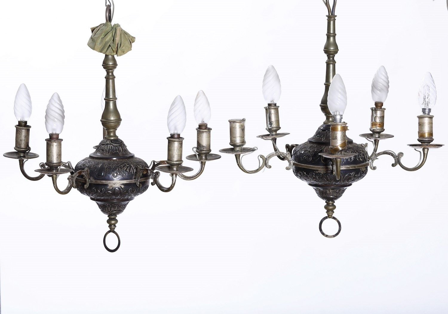 Coppia di lampadari in stile settecentesco con coppa centrale in argento