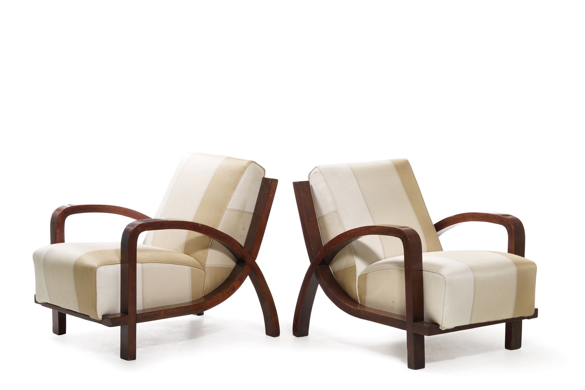 Coppia poltrone Decò con struttura in legno. XX secolo