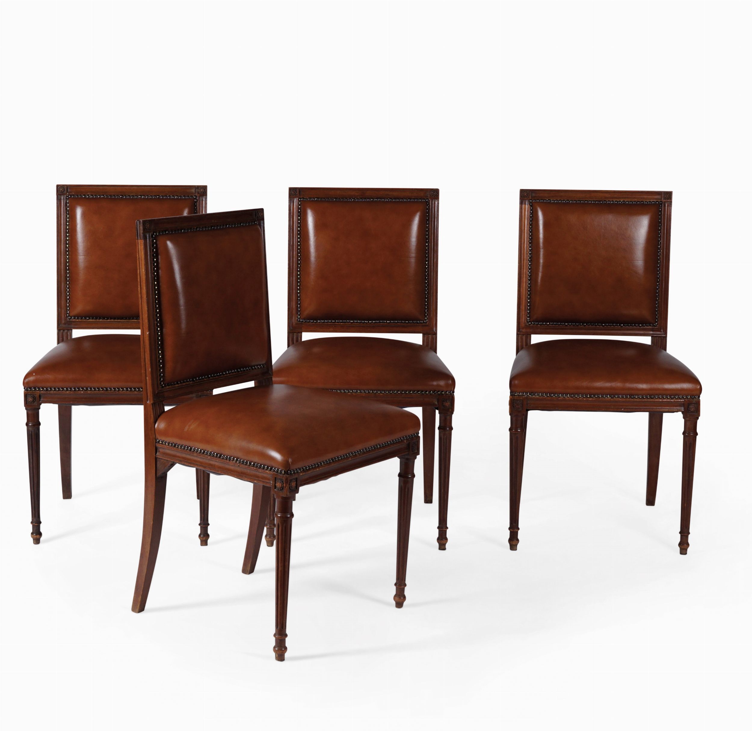 Gruppo di undici sedie Luigi XVI in noce intagliato. Fine XVIII secolo