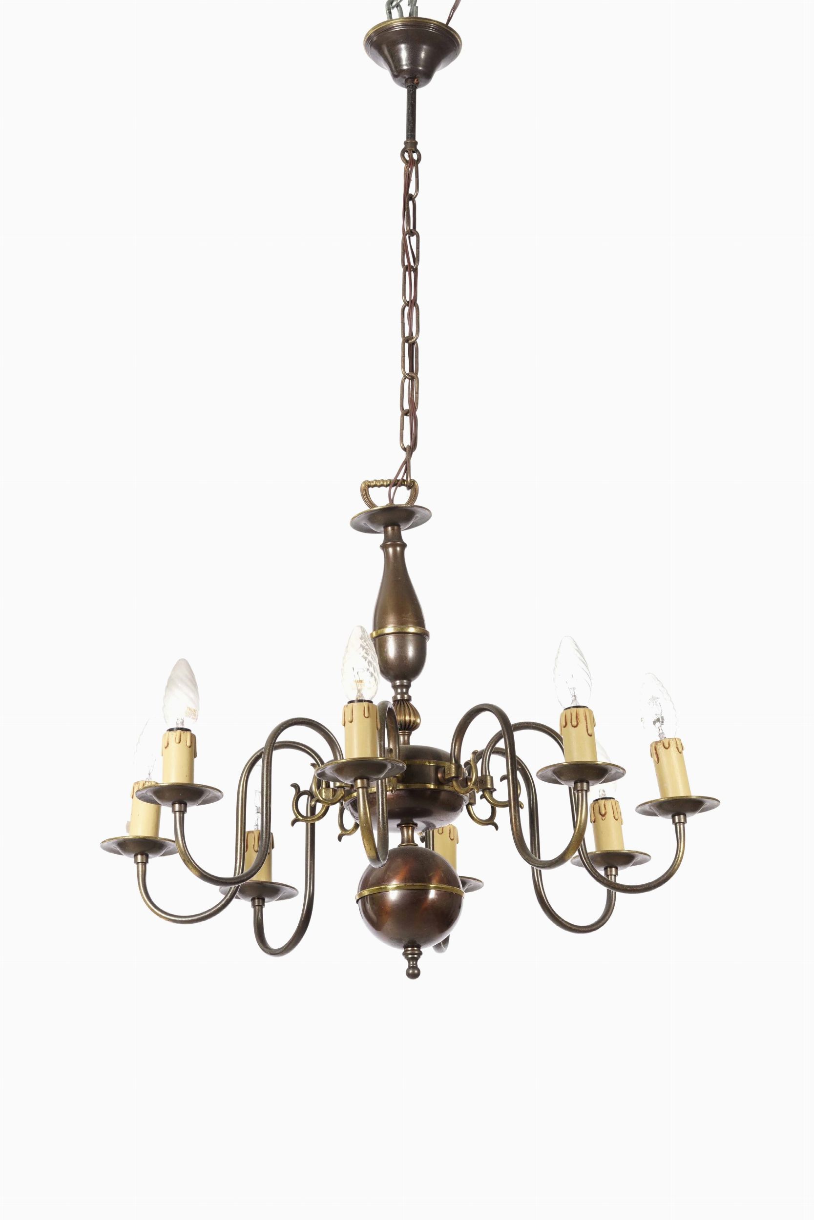 Lampadario in metallo a otto luci e altro lampadario con gocce. XX secolo