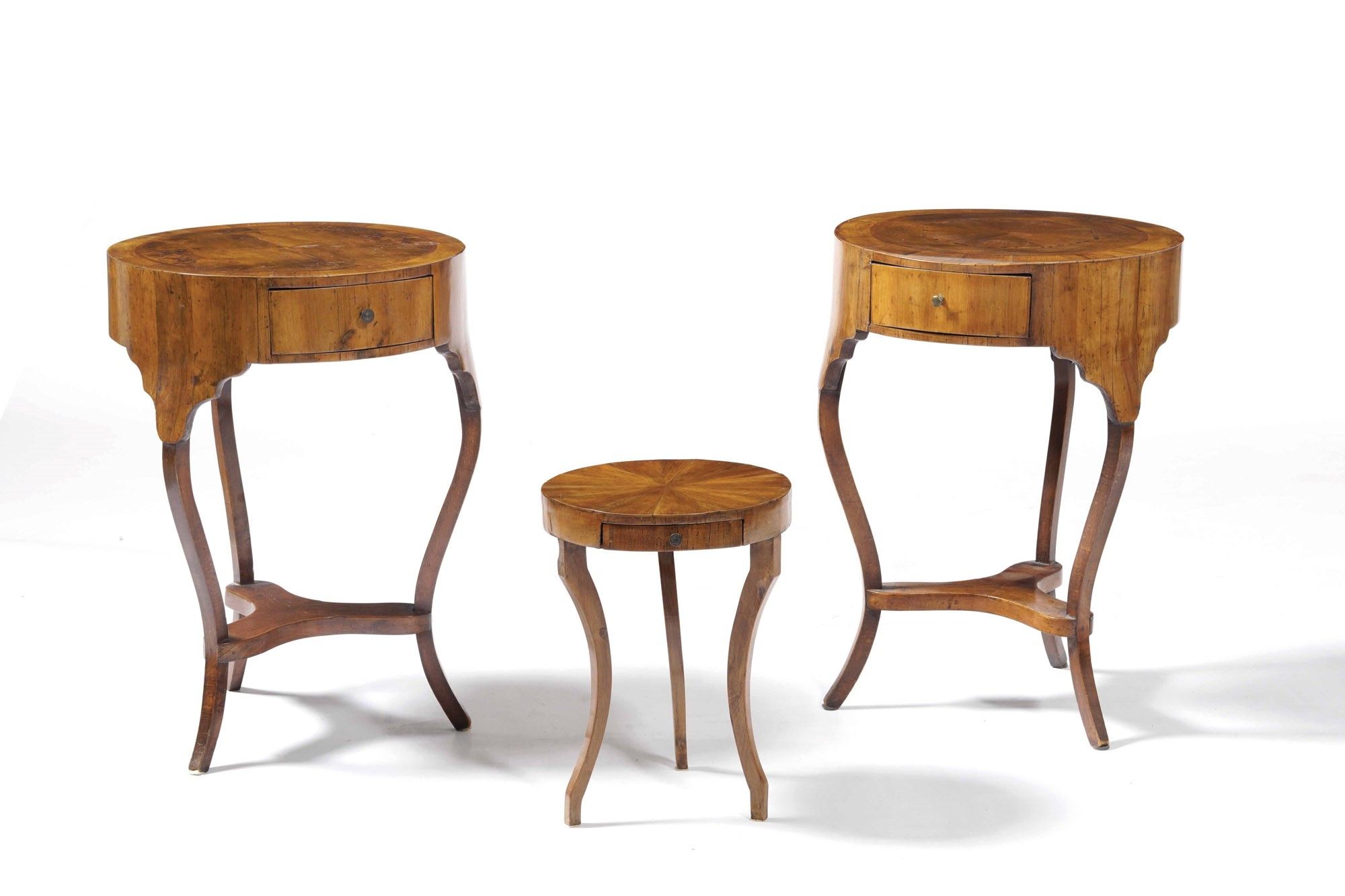 Lotto composto da una coppia di tavolini tondi con cassetto e un piccolo tavolino [..]