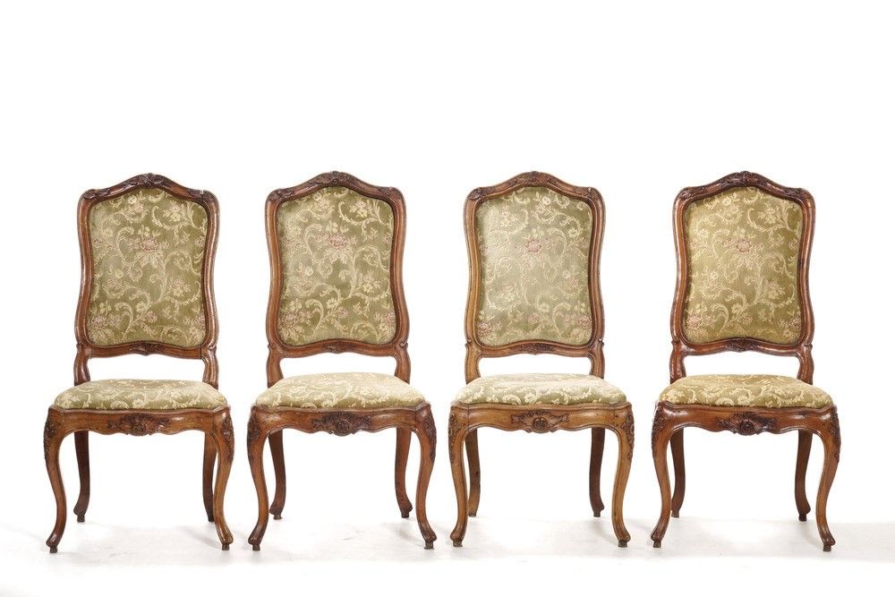 Lotto di sette sedie in legno intagliato. XVIII secolo