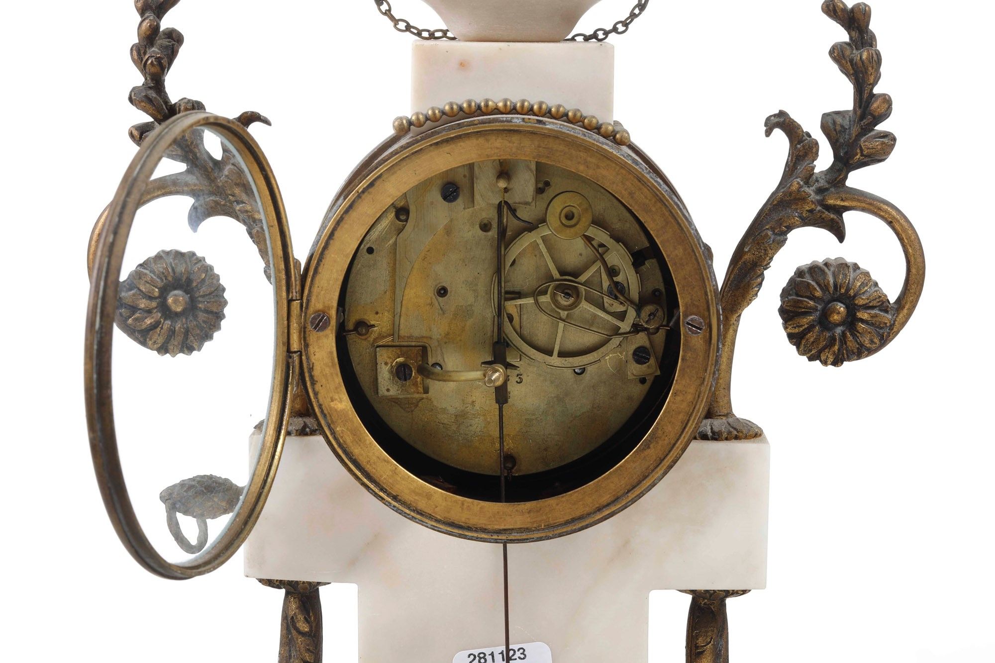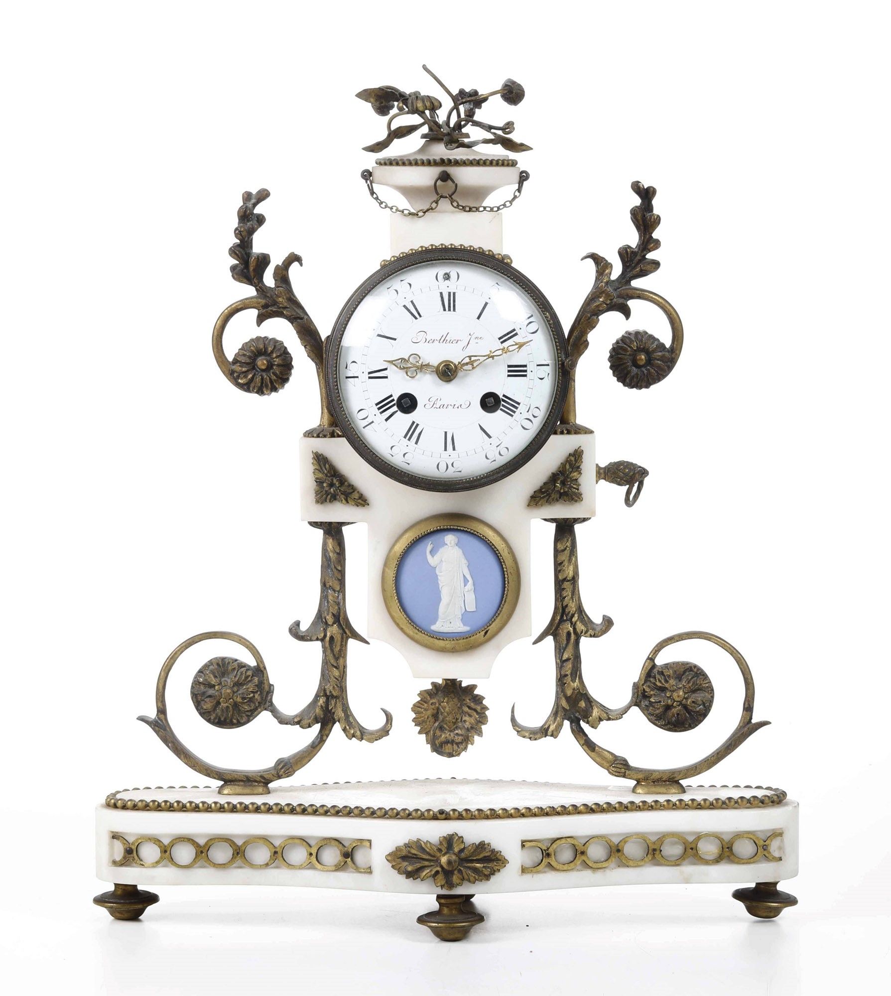 Pendola a portico in marmo, bronzo dorato, con placchette in biscuit. Francia, XIX [..]