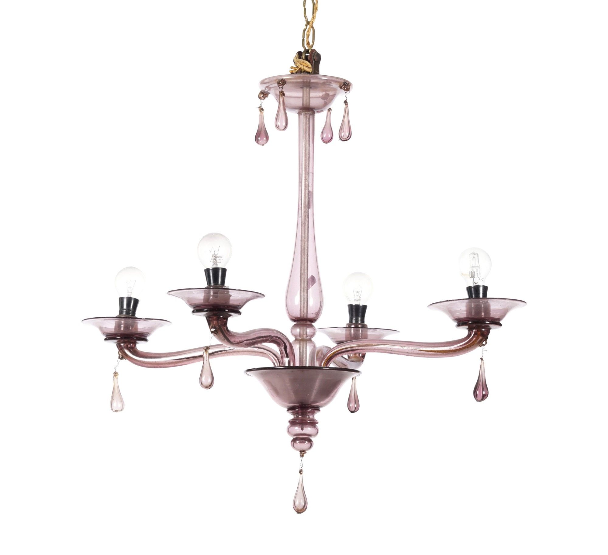 Piccolo lampadario a 4 luci in vetro di Murano. XX secolo