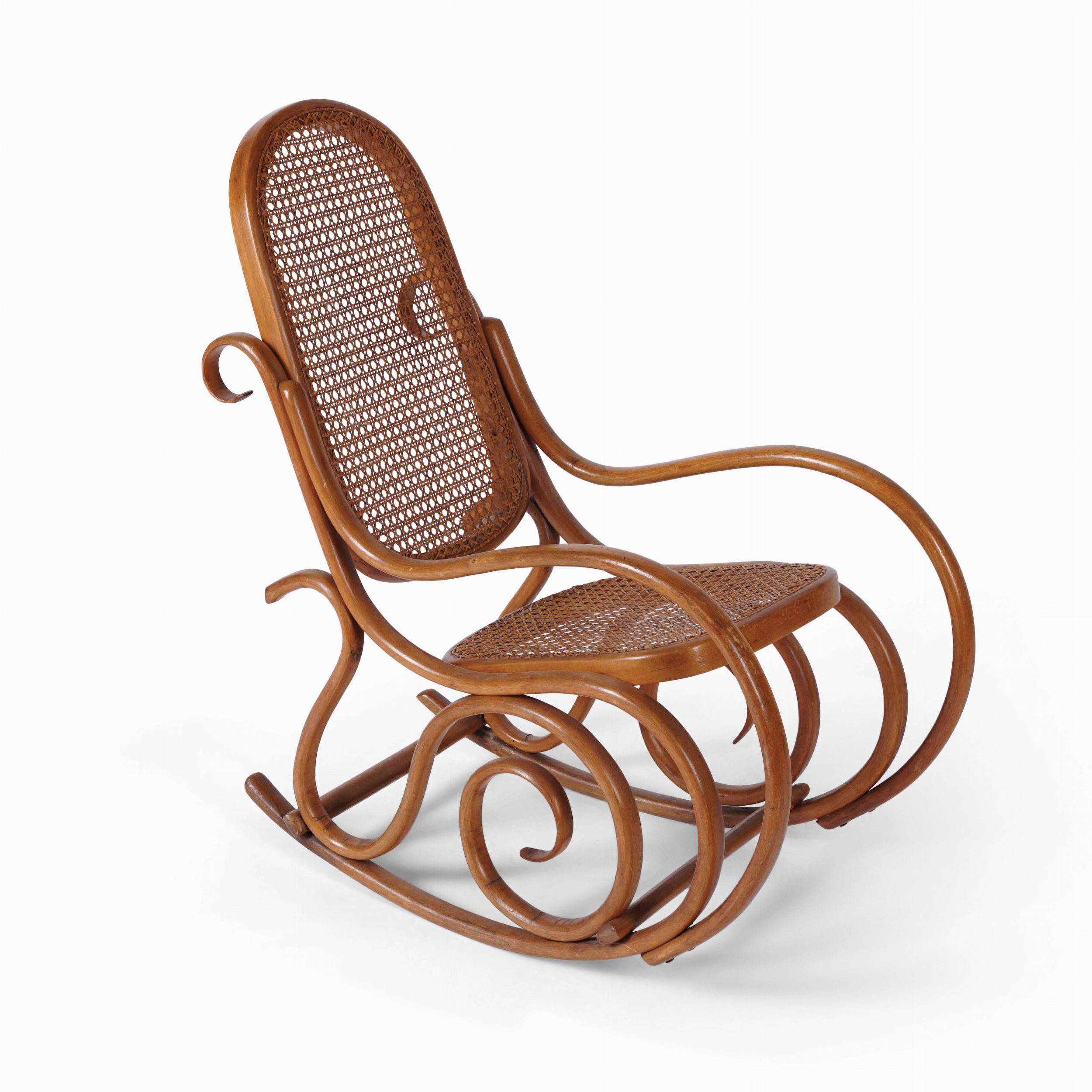Sedia a dondolo tipo Thonet in faggio curvato. XX secolo
