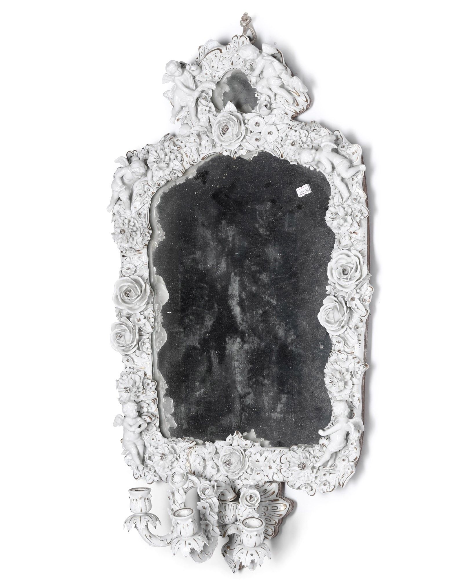 Specchiera in porcellana con decoro floreale e angeli. XX secolo