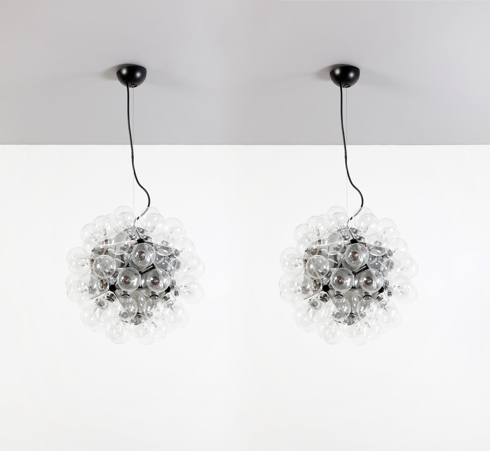 Etichetta della manifattura. Sitografia: https://www.fondazioneachillecastiglioni.it/progetto/lampada-a-sospensione-taraxacum-88/Ogni lampada contiene 60 lampadine (per un totale di 120 lampadine). Si ricorda che l'impianto elettrico non è testato, dunque alcune lampadine potrebbero non essere funzionanti.