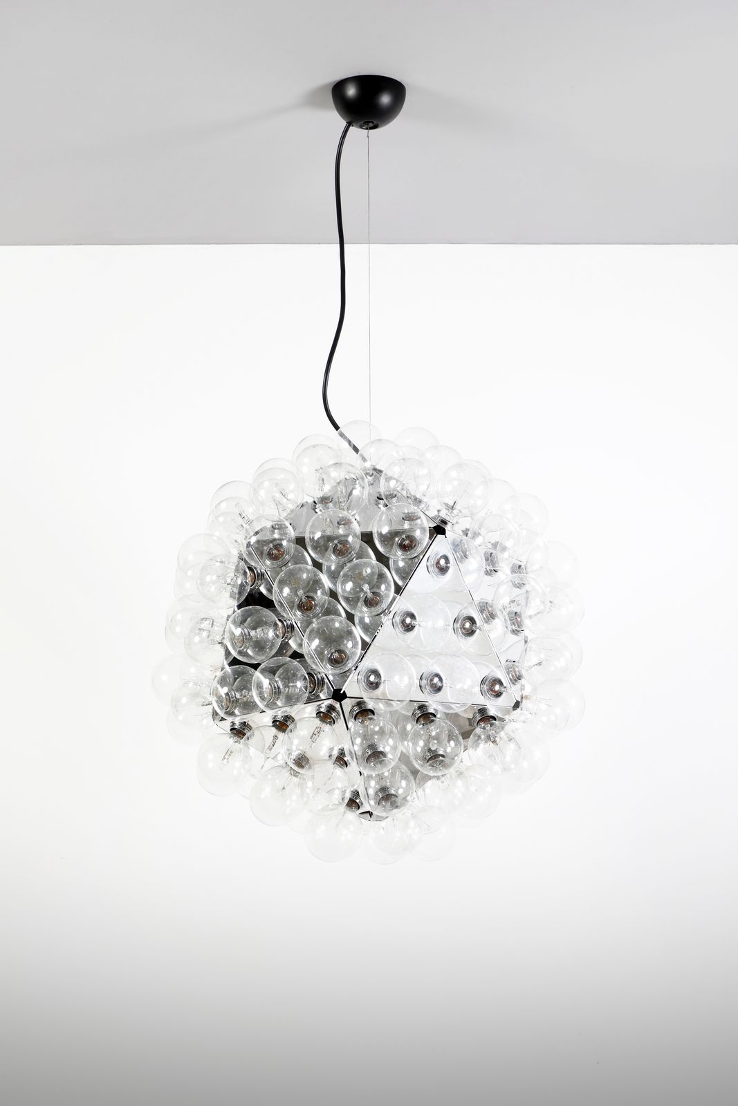 Etichetta della manifattura. Sitografia: https://www.fondazioneachillecastiglioni.it/progetto/lampada-a-sospensione-taraxacum-88/Il lampadario contiene un totale di 120 lampadine. Si ricorda che l'impianto elettrico non è testato, dunque alcune lampadine potrebbero non essere funzionanti.