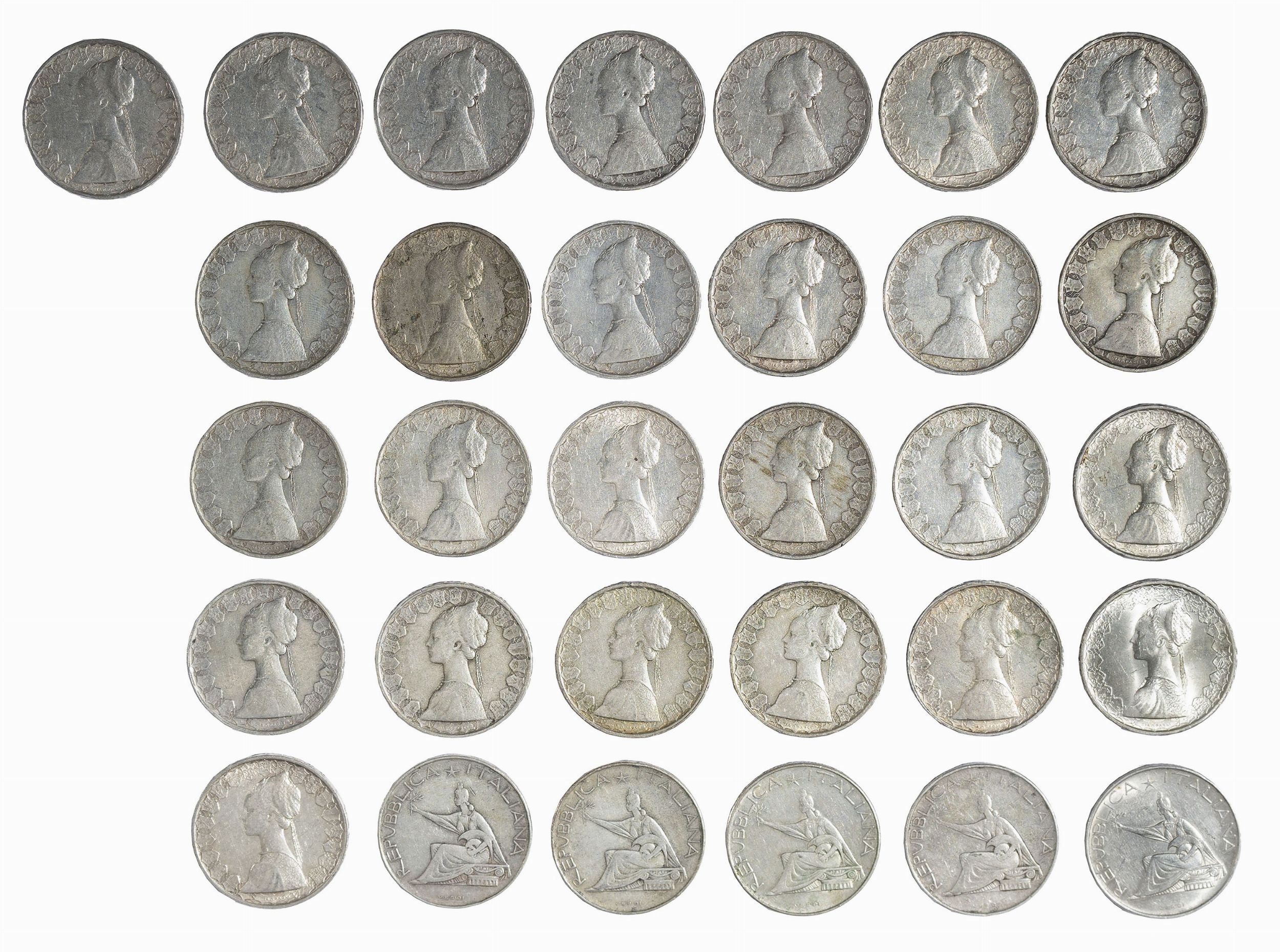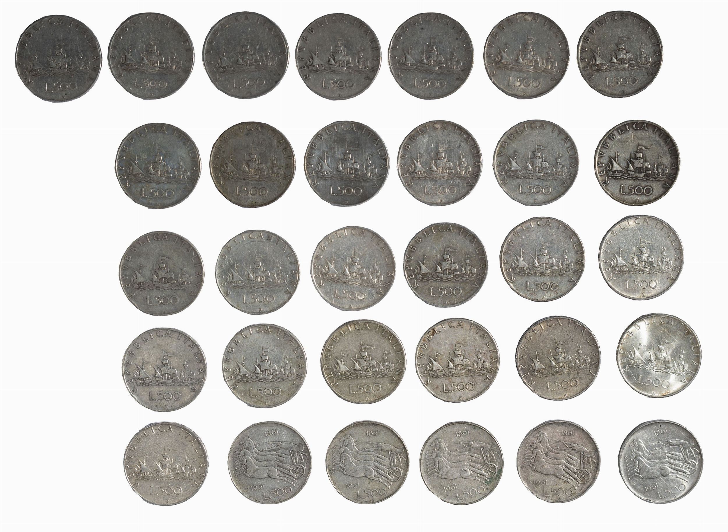 lotto composto da 31 esemplari di monete da 500 Lire