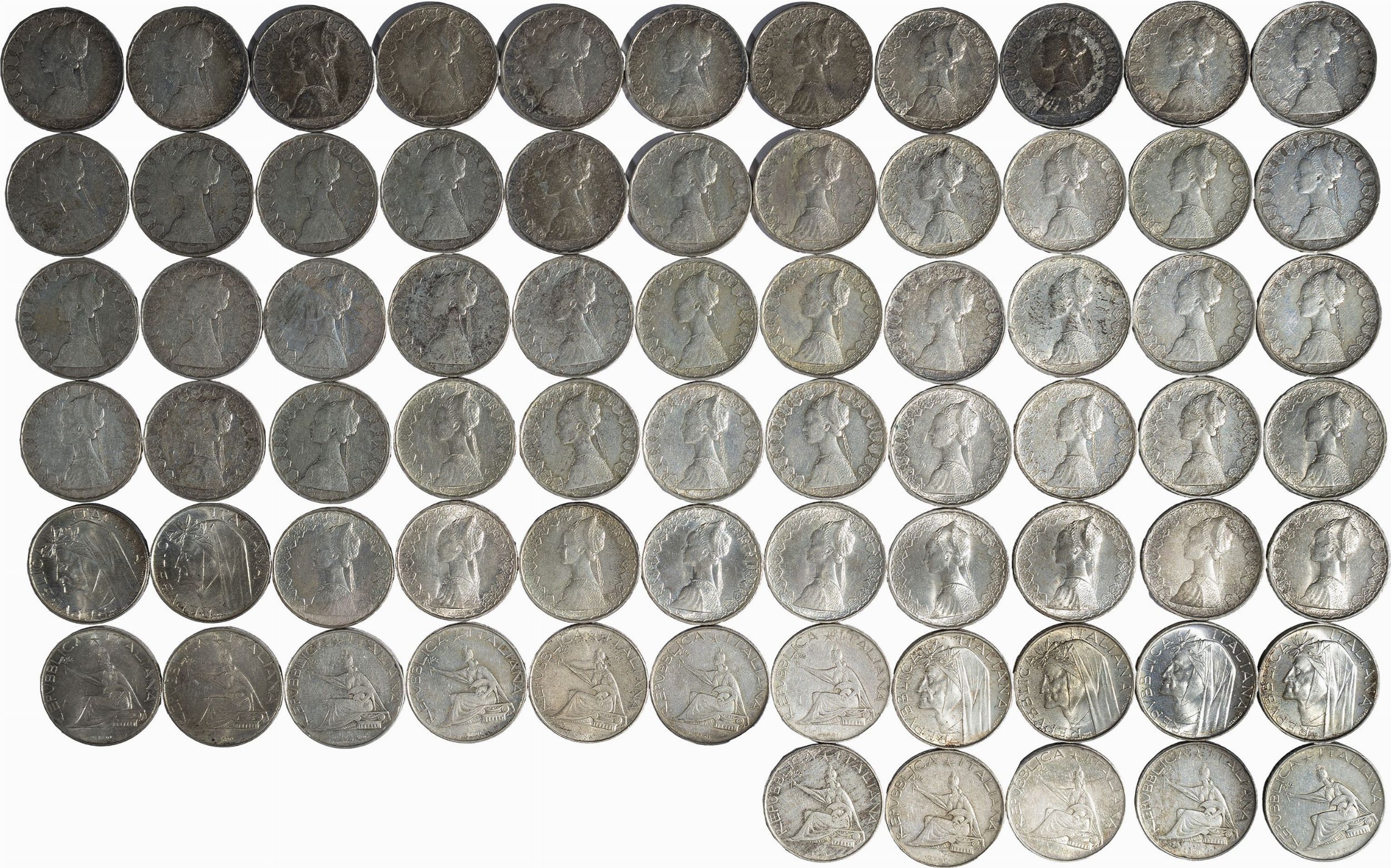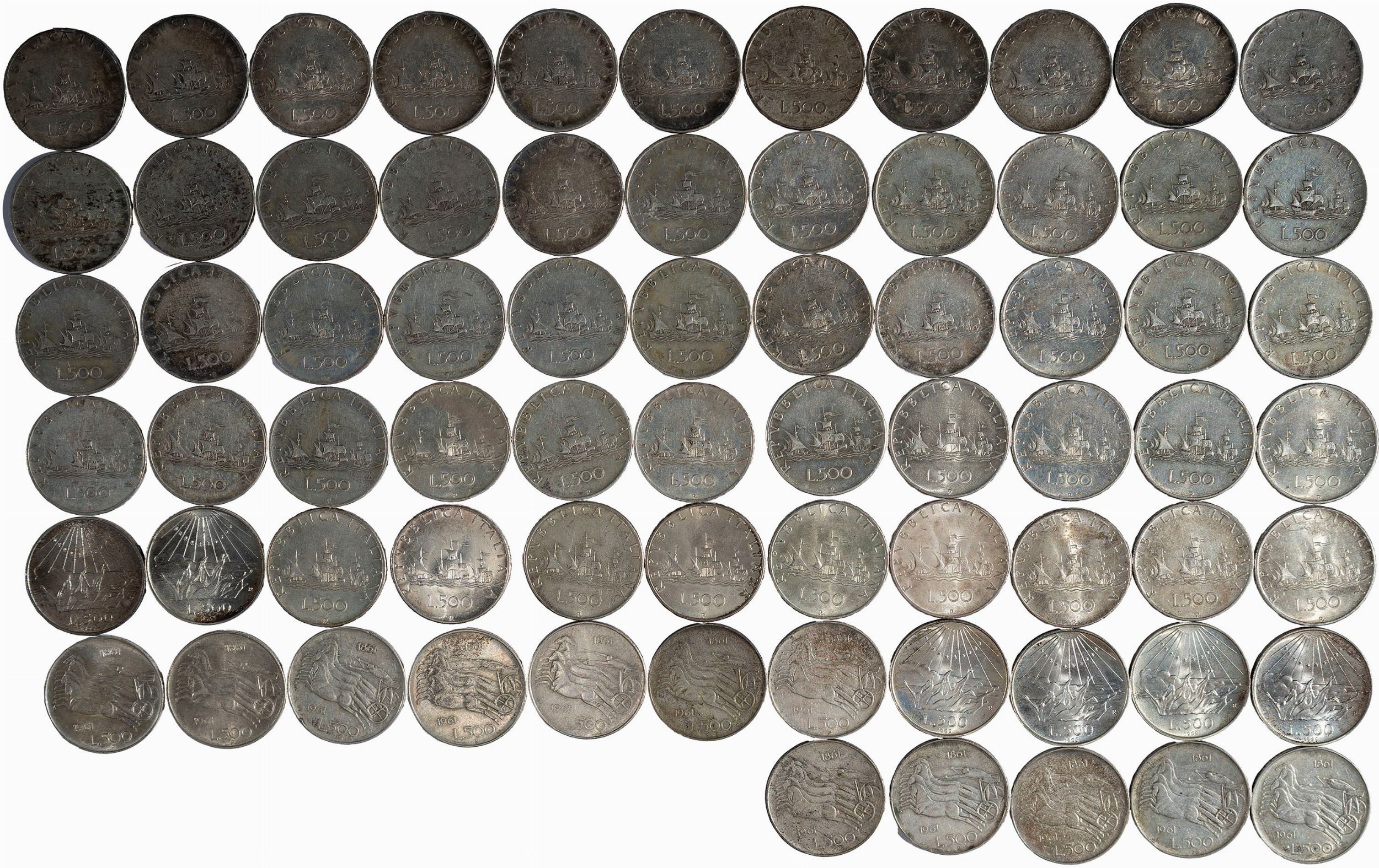 53 Caravelle, 12 Centenario Unità d'Italia, 6 Dante; Metallo: AR, peso totale gr. 778,30.