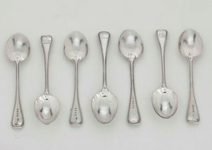 Sette cucchiai. Londra, 1882. Argentiere Chawner & Co - George William Adams