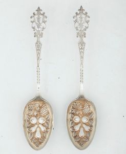 Coppia di cucchiai da cerimonia. Birmingham, 1909. Marchio dell'argentiere W.F.H. [..]