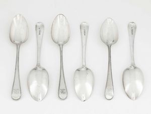 Dodici cucchiai. Londra, 1831. Argentiere William Fearn