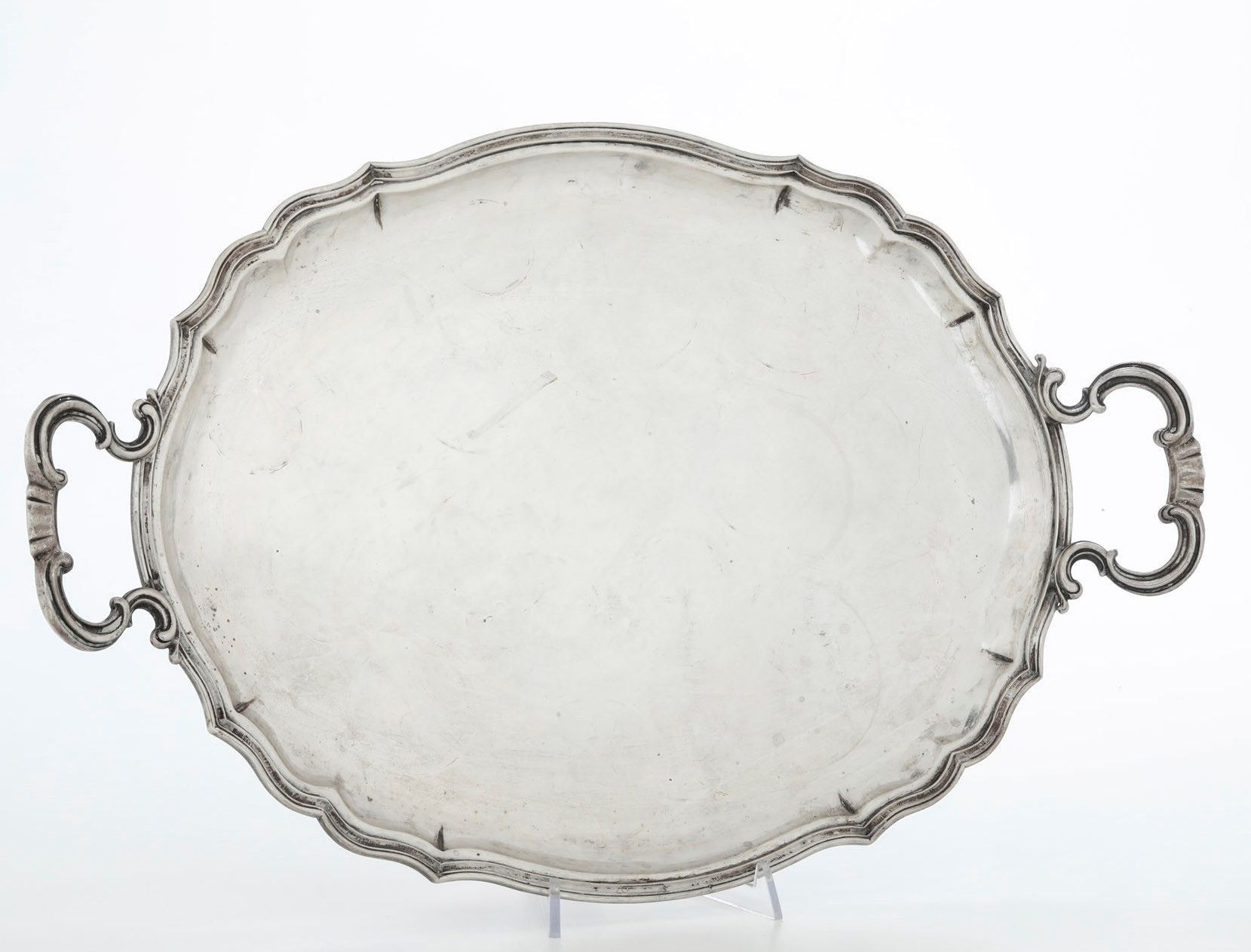 Due vassoi. Uno argenteria milanese, marchio con fascio littorio in uso dal 1935 [..]