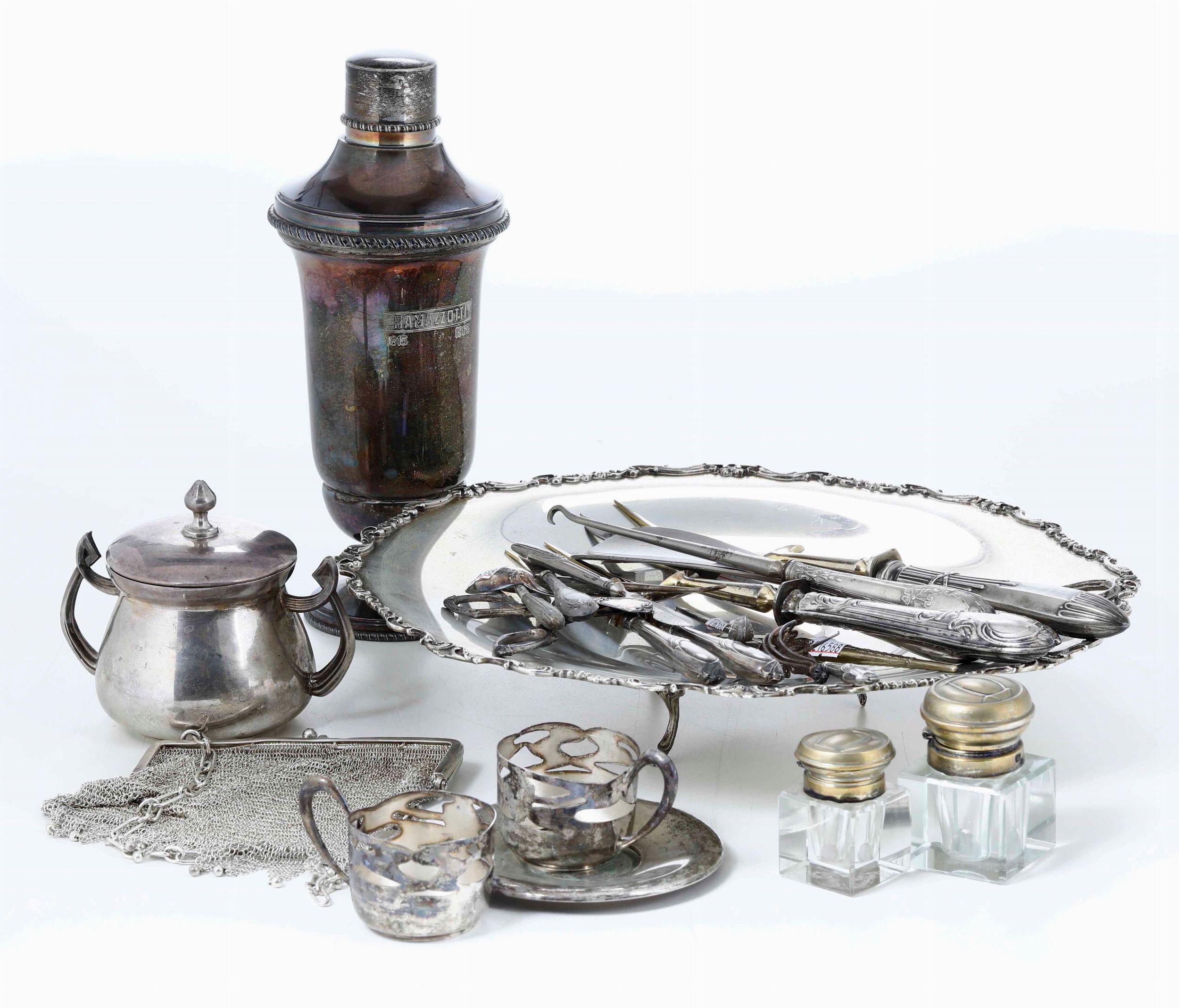 Insieme di oggetti in argento. Differenti manifatture del XX secolo
