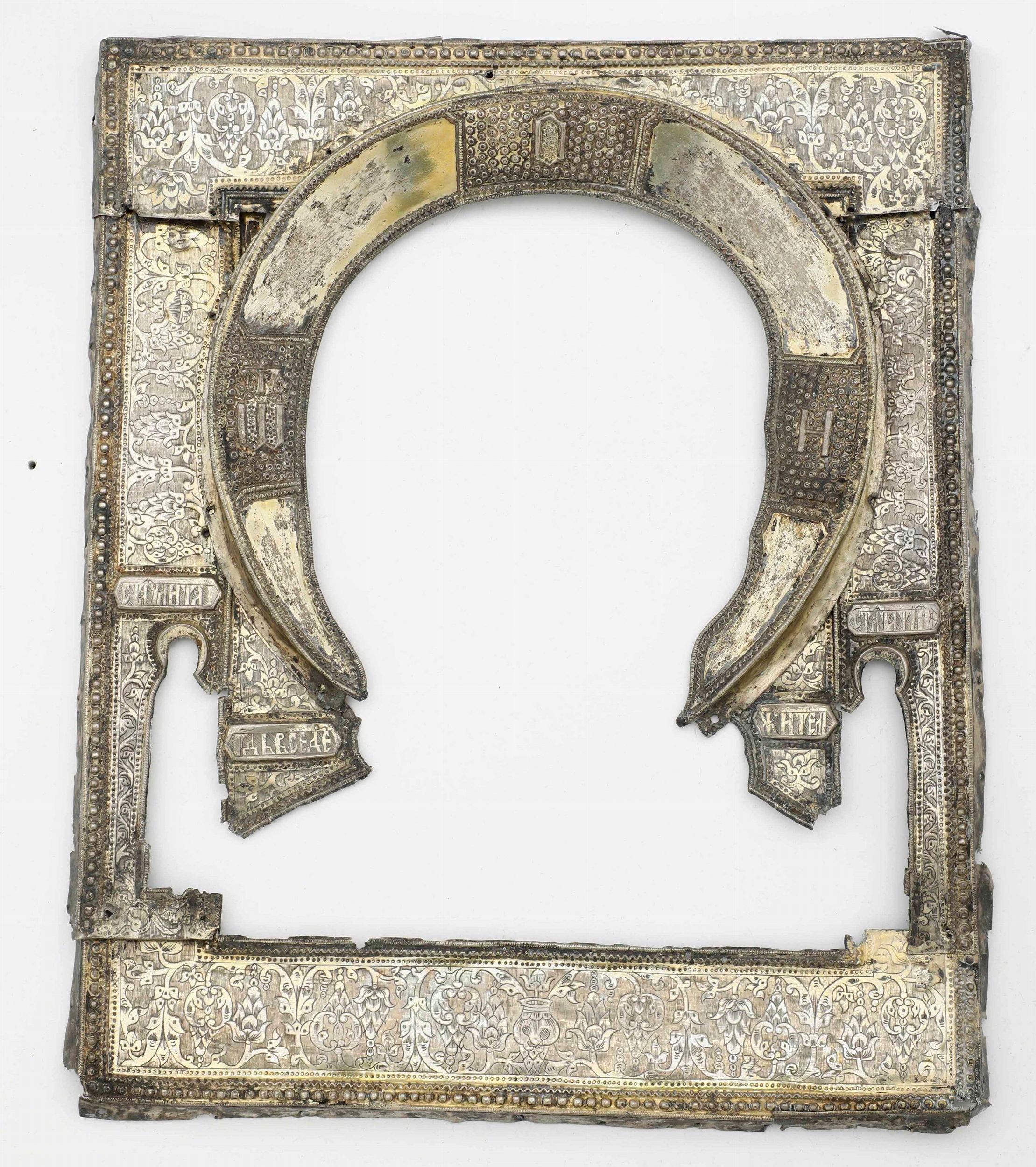 Lotto di varie rize ed elementi in metallo e argento sbalzato