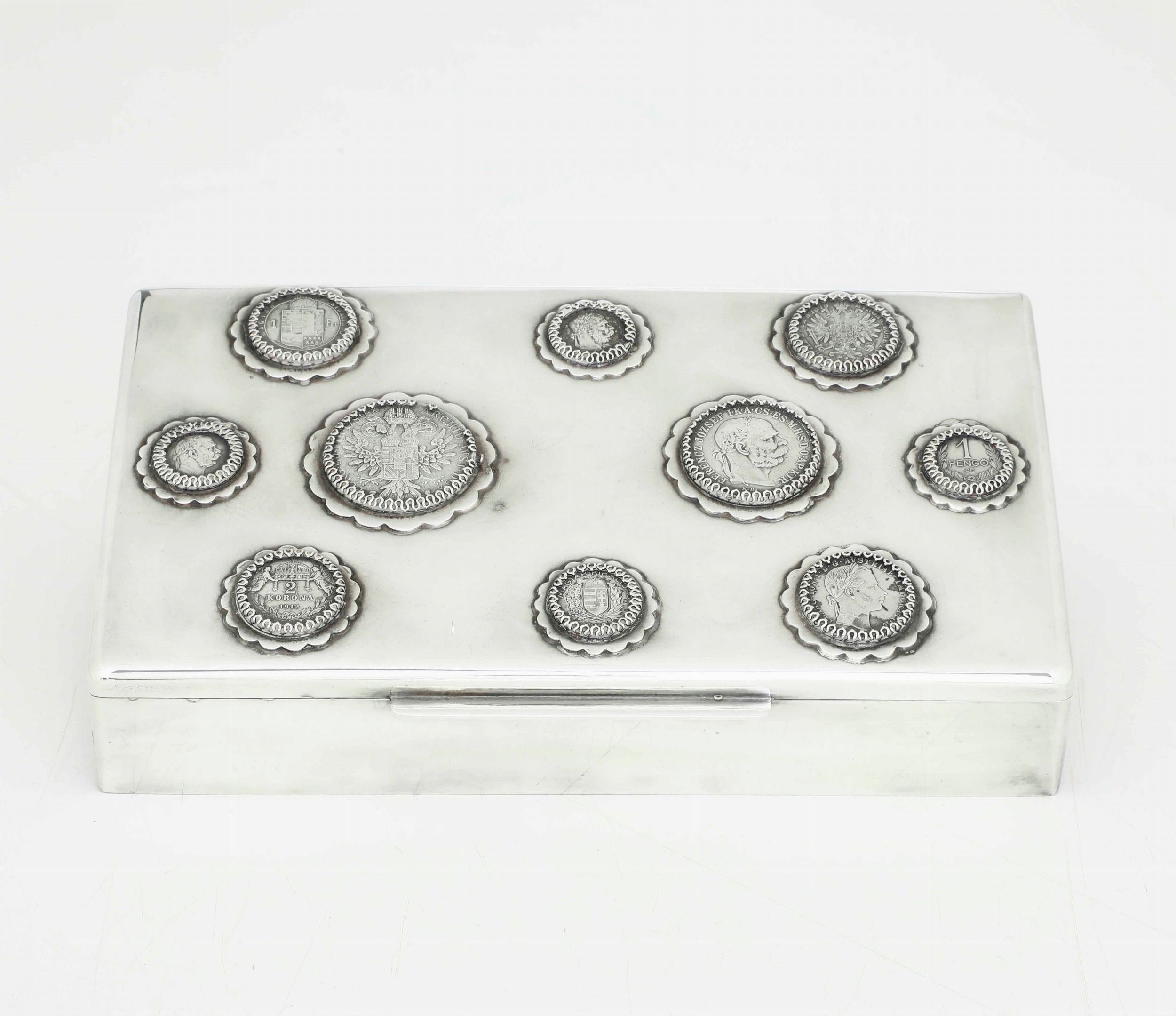 Scatola. Argento fuso e sagomato. Struttura in legno. Argenteria belga del XX secolo. [..]
