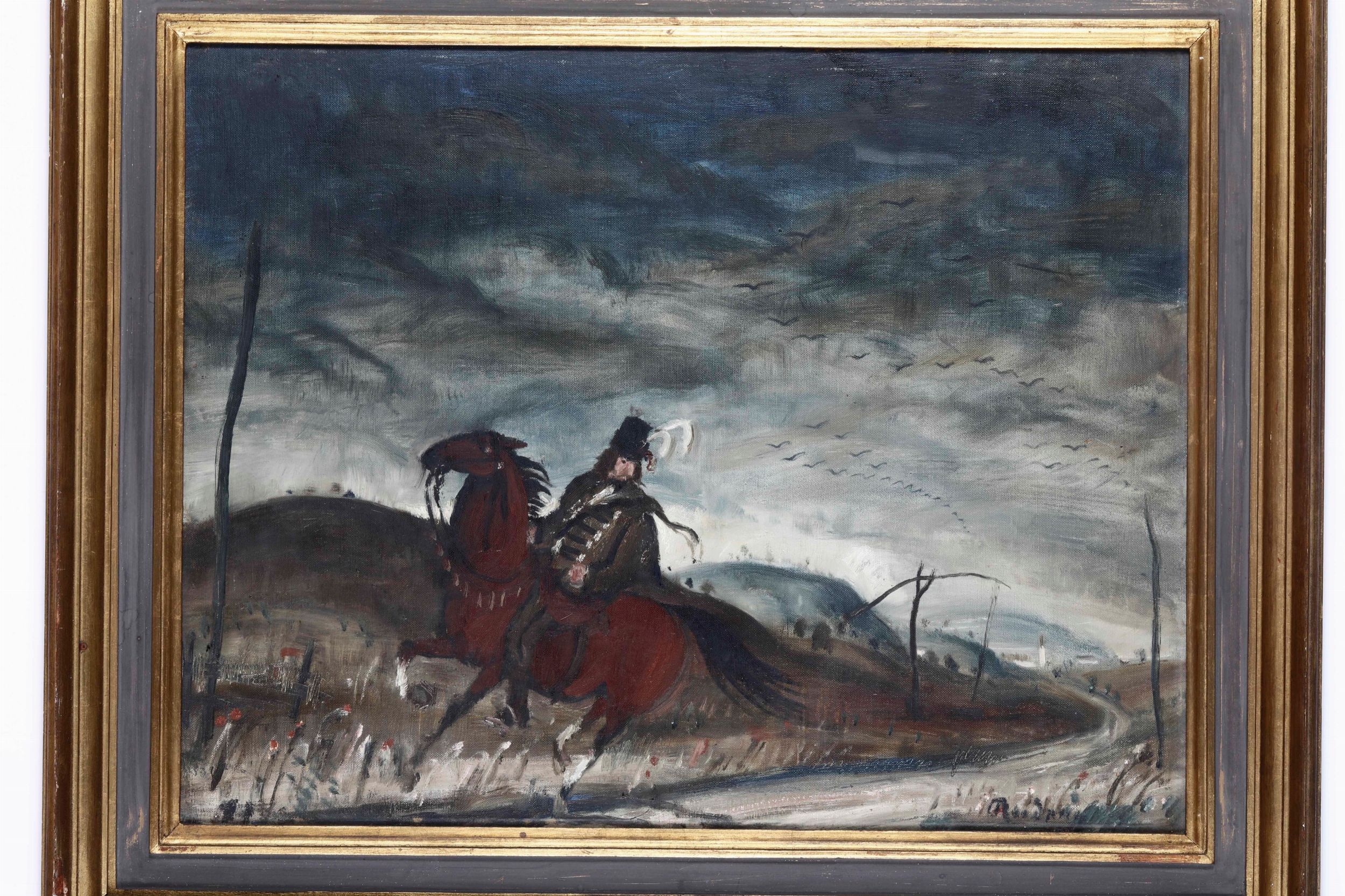 Firma illeggibile Paesaggio con cavaliere
