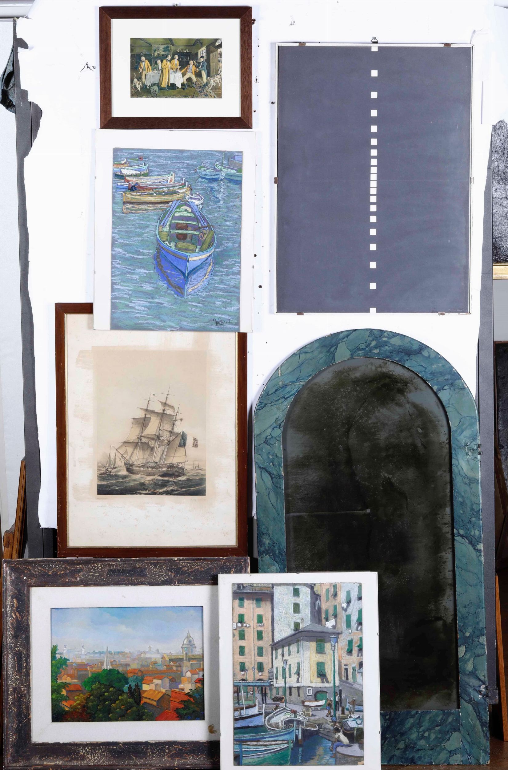 Lotto di stampe, una specchiera marmorizzata e un paesaggio Aldo di Castro olio [..]