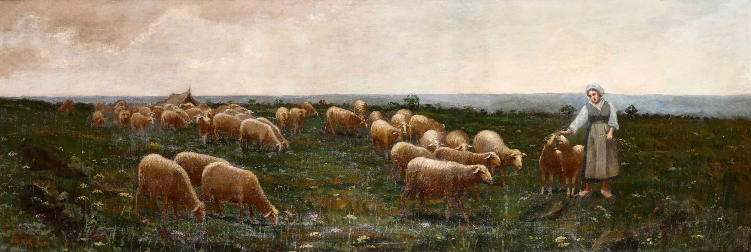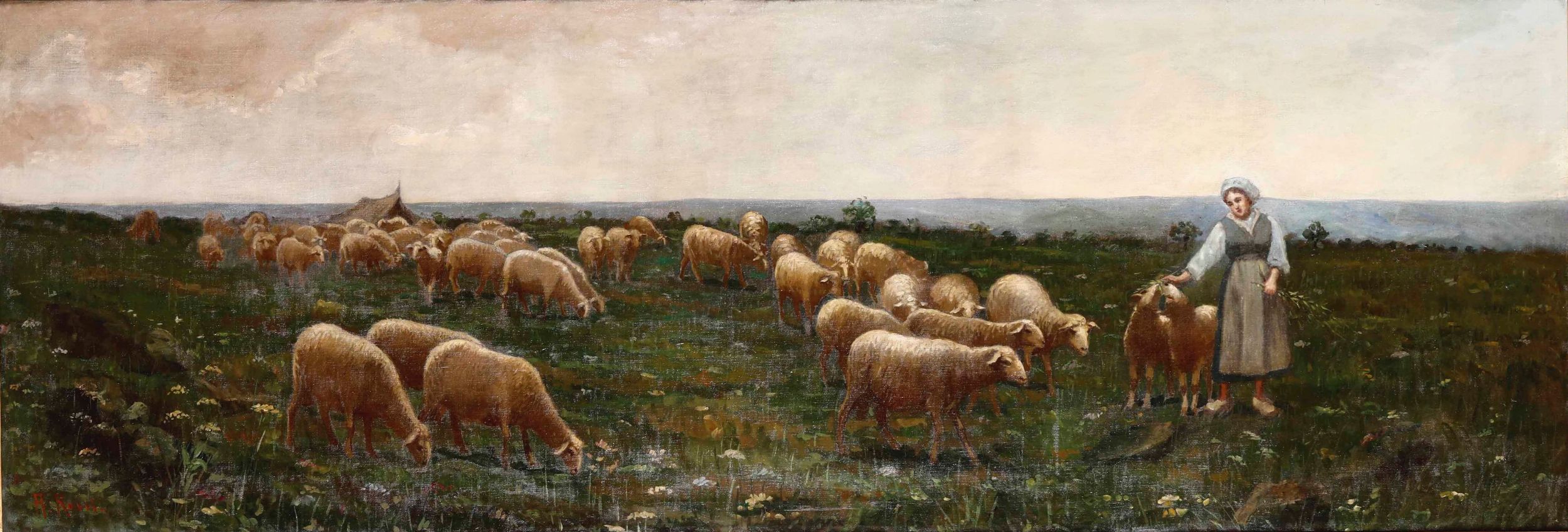 Pastorella con gregge di pecore