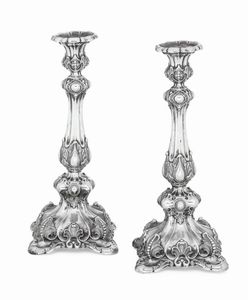 Coppia di candelieri. Impero Austro-Ungarico, XIX secolo. Marchi di garanzia genovesi [..]