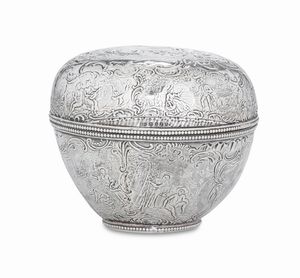 Scatola. Argento fuso e sagomato. Struttura in legno. Argenteria belga del XX secolo. [..]