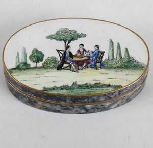 Tabacchiera ovale in pietra dura. Manifattura europea del XVIII-XIX secolo