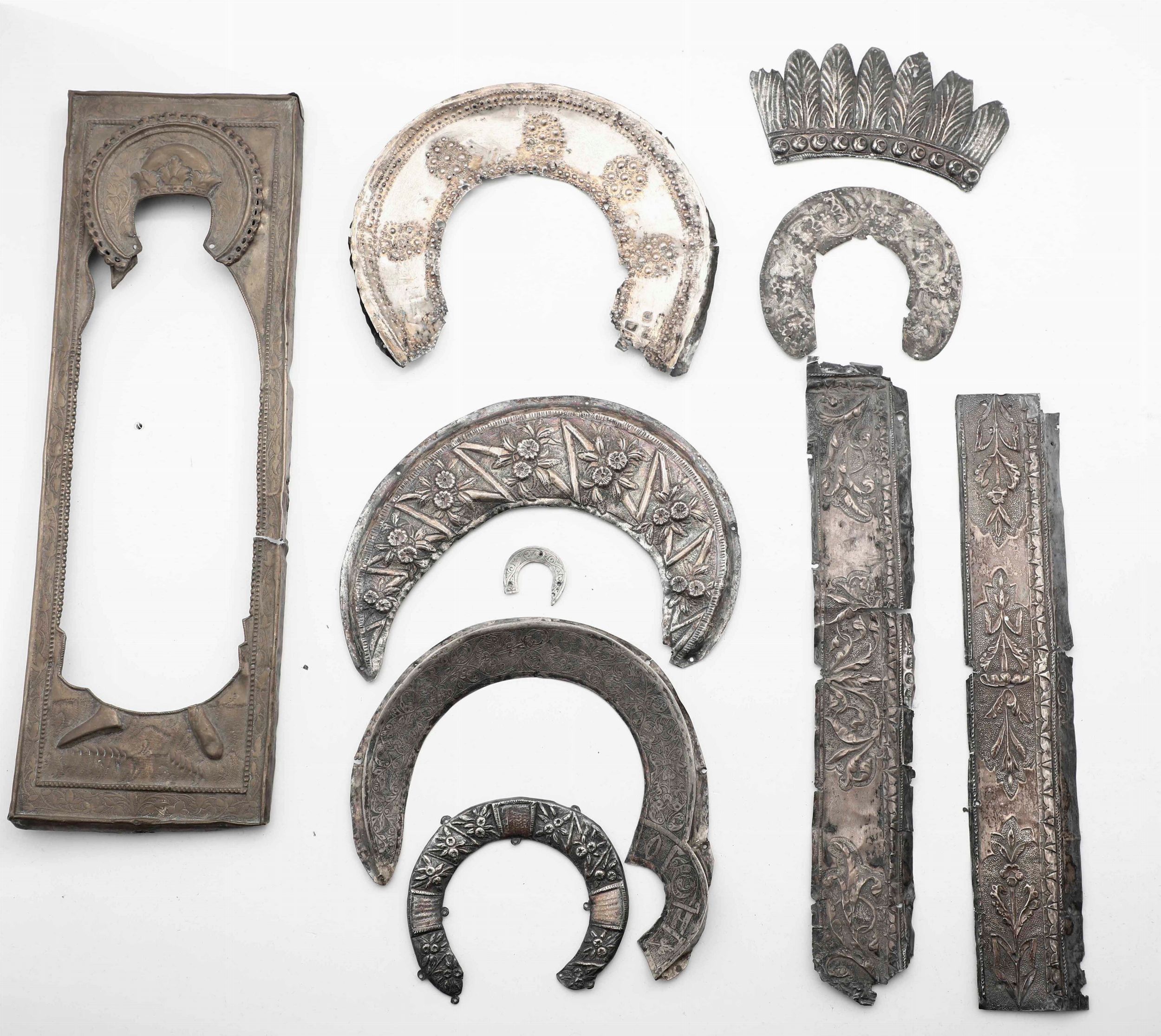 Lotto di varie rize ed elementi in metallo e argento sbalzato