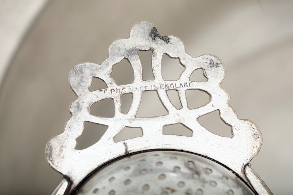 Scaldavivande e colino in metallo argentato