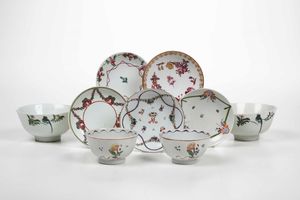 Lotto composto da quattro diverse tazze e cinque piattini