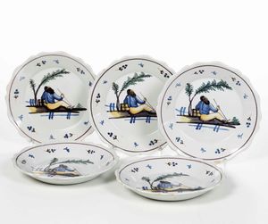 Cinque piatti in porcellana con decori naturalistici, Cina, XX secolo