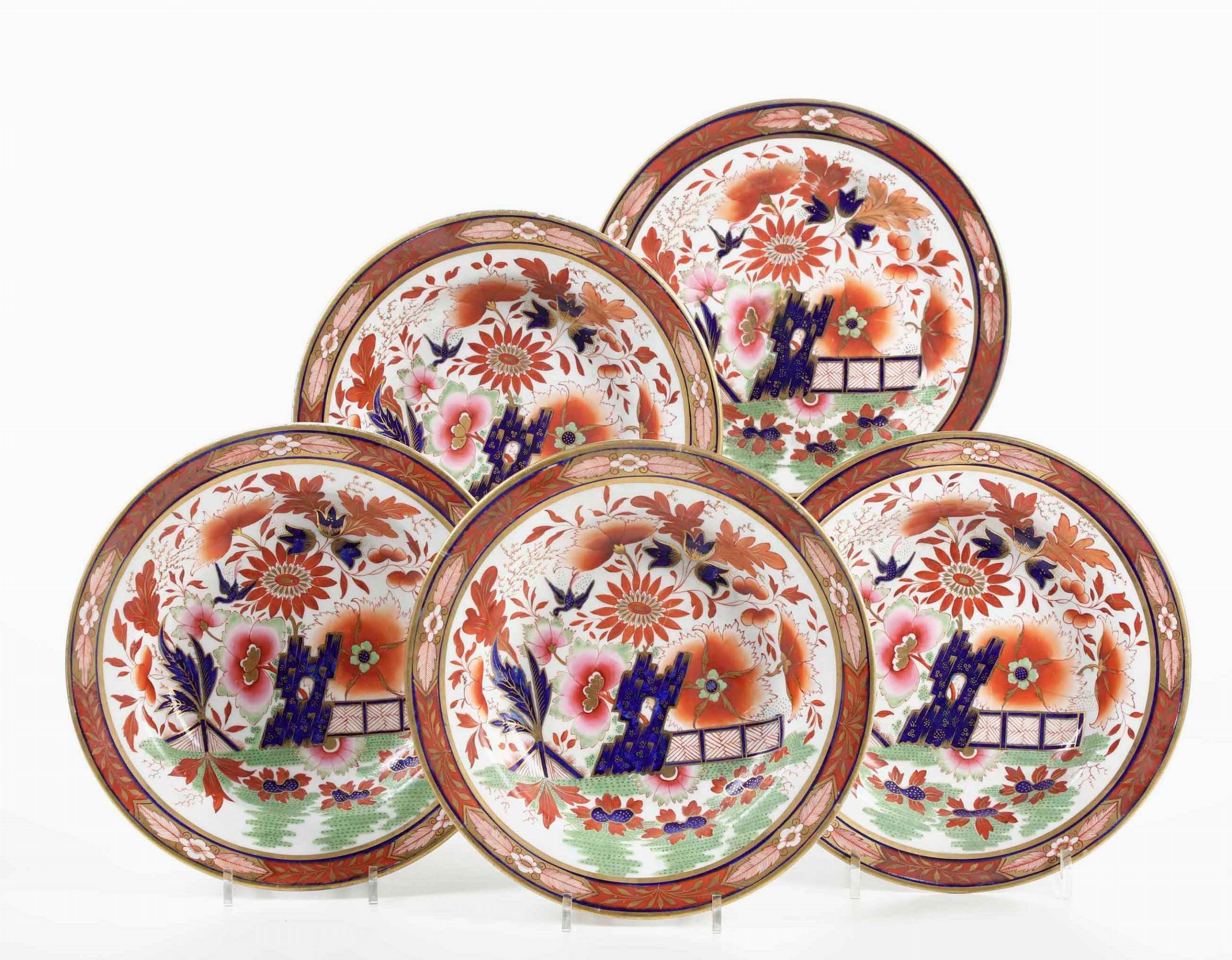 Cinque piatti in porcellana con decori naturalistici, Cina, XX secolo