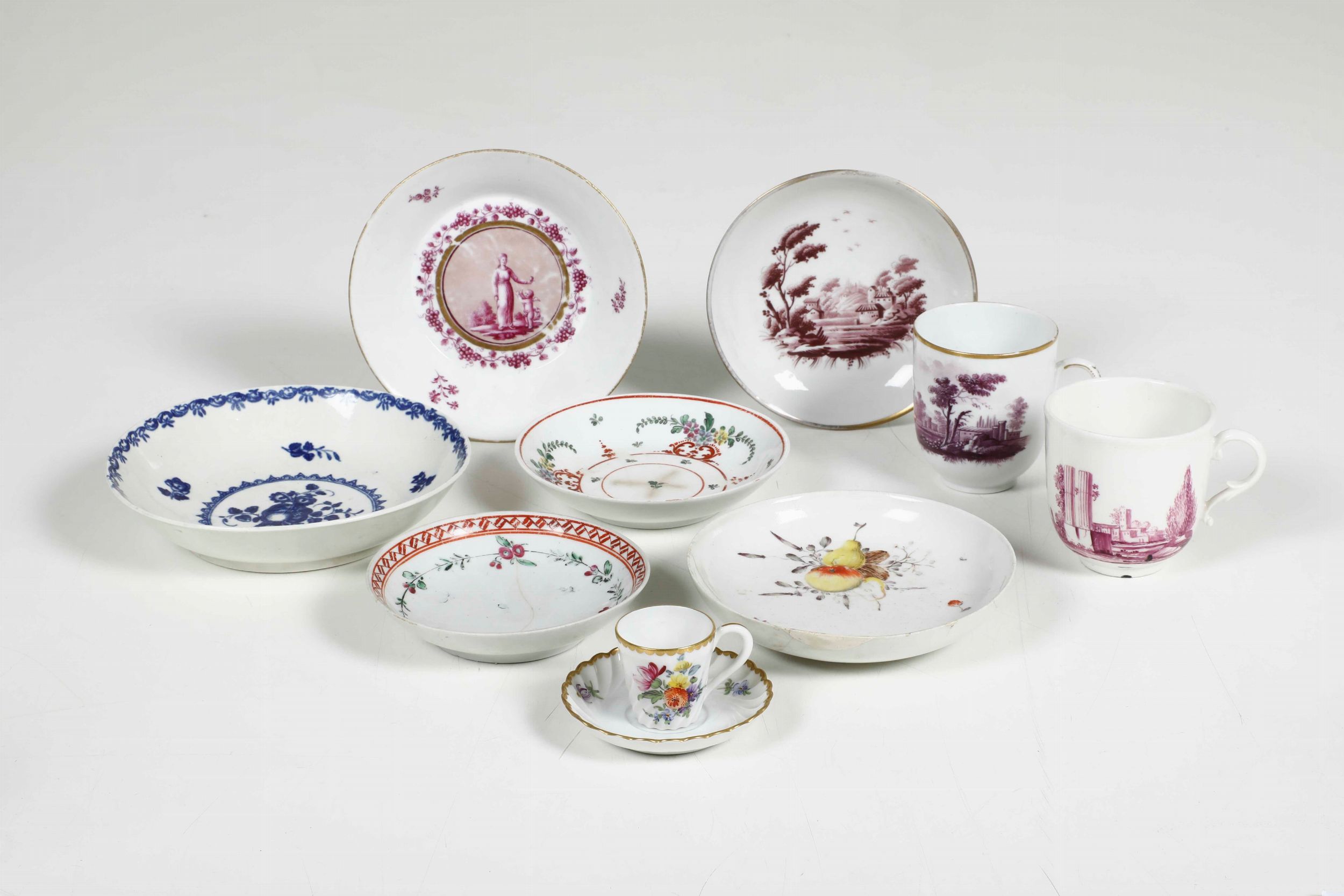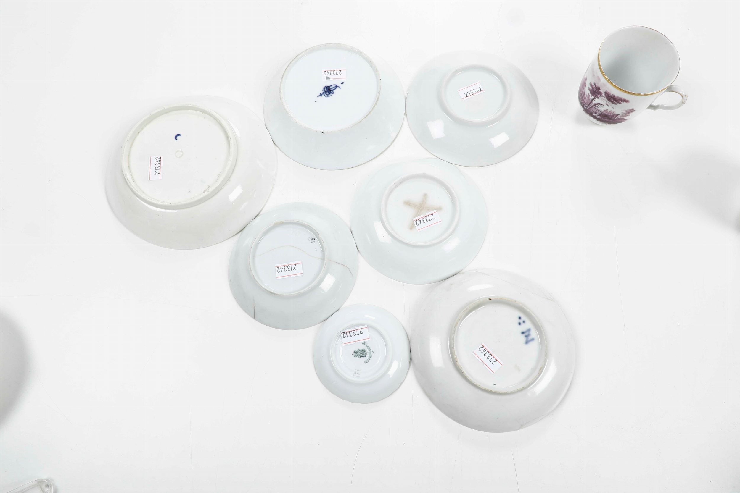 Tre differenti tazze e sei differenti piattini