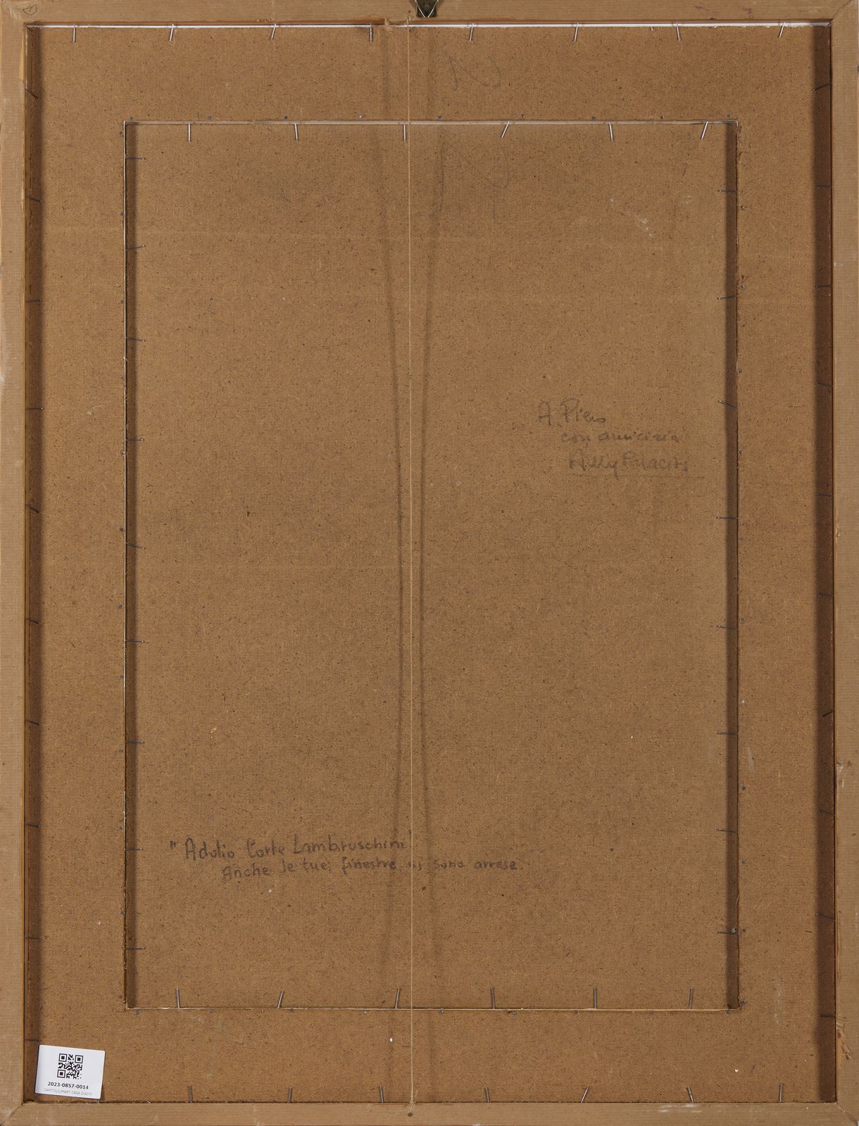 Firma in basso a destra. Al retro titolo, firma e dedica.