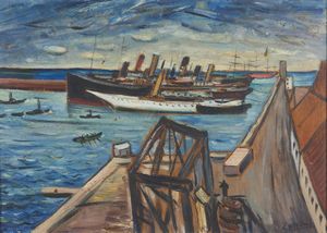 Firma in basso a sinistra. Al retro titolo, firma e cartiglio Galleria d'Arte Ponte Rosso, Milano. Lievi difet [..]