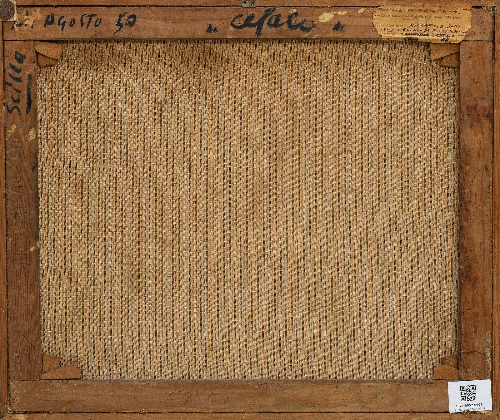 Firma e anno in basso a destra. Al retro titolo, firma e cartiglio descrittivo III Mostra Nazionale di Pittura Premio'Golfo della Spezia', La Spezia.