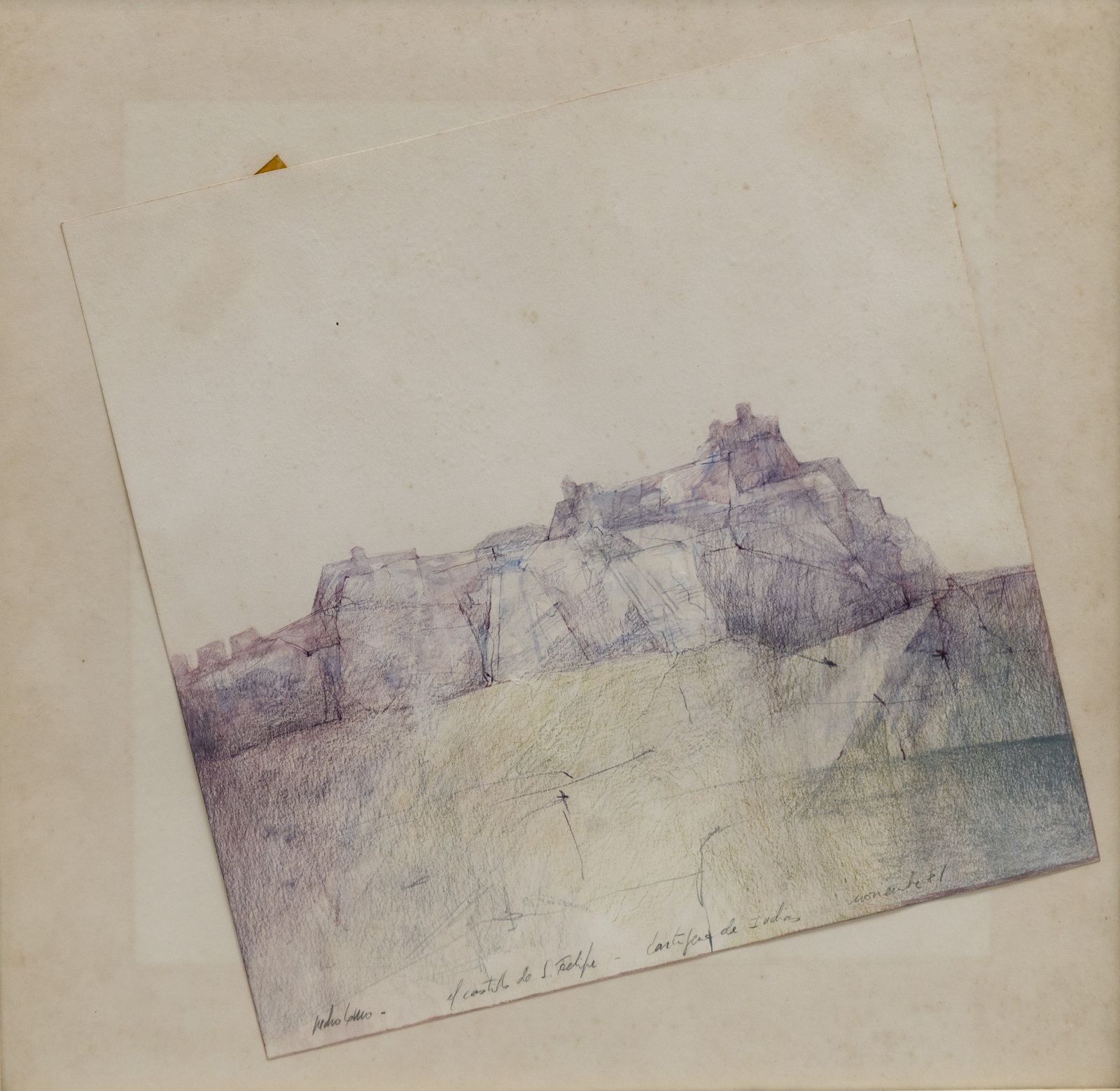 Firma, titolo e anno in basso a matita. Al retro titolo. Lievi difetti.
