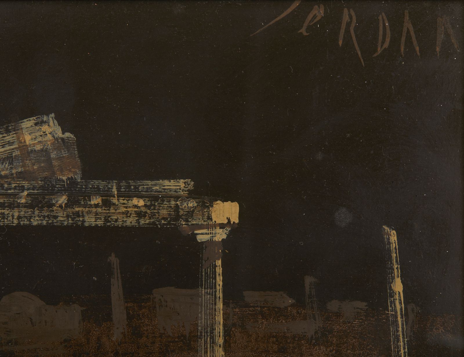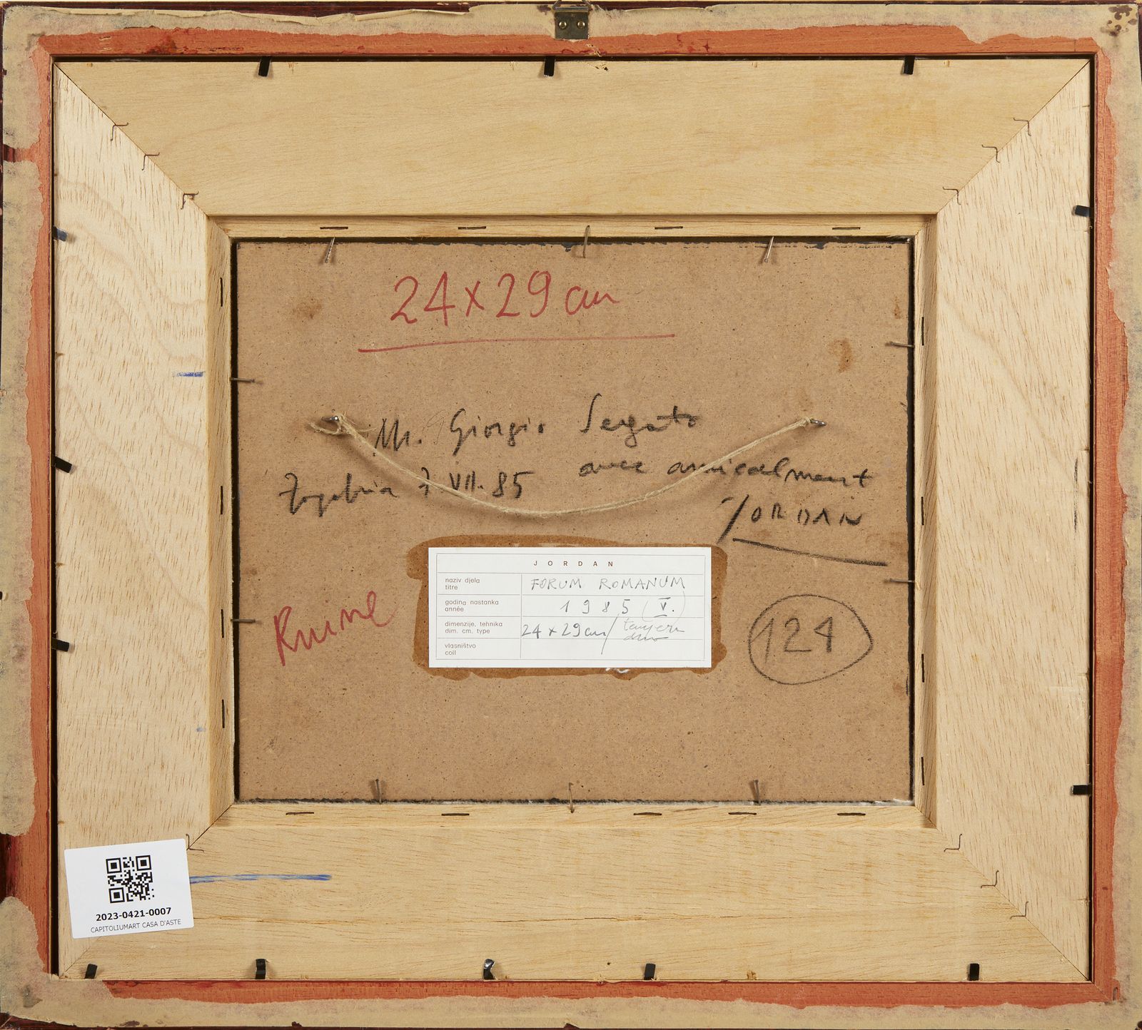 Firma in alto a destra. Al retro firma e cartiglio descrittivo dell'artista.