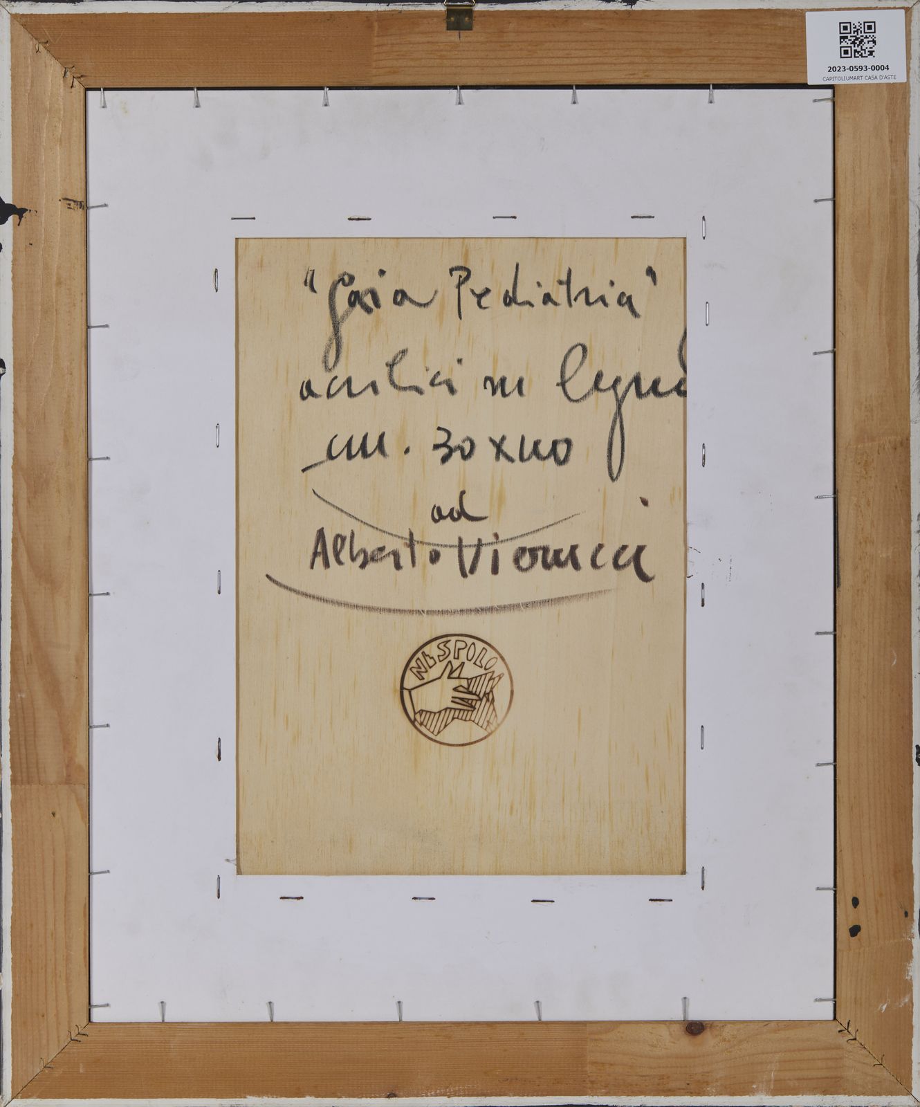 Firma in alto a destra. Autentica dell'artista su fotografia. Al retro titolo, dedica e timbro dell'artista.