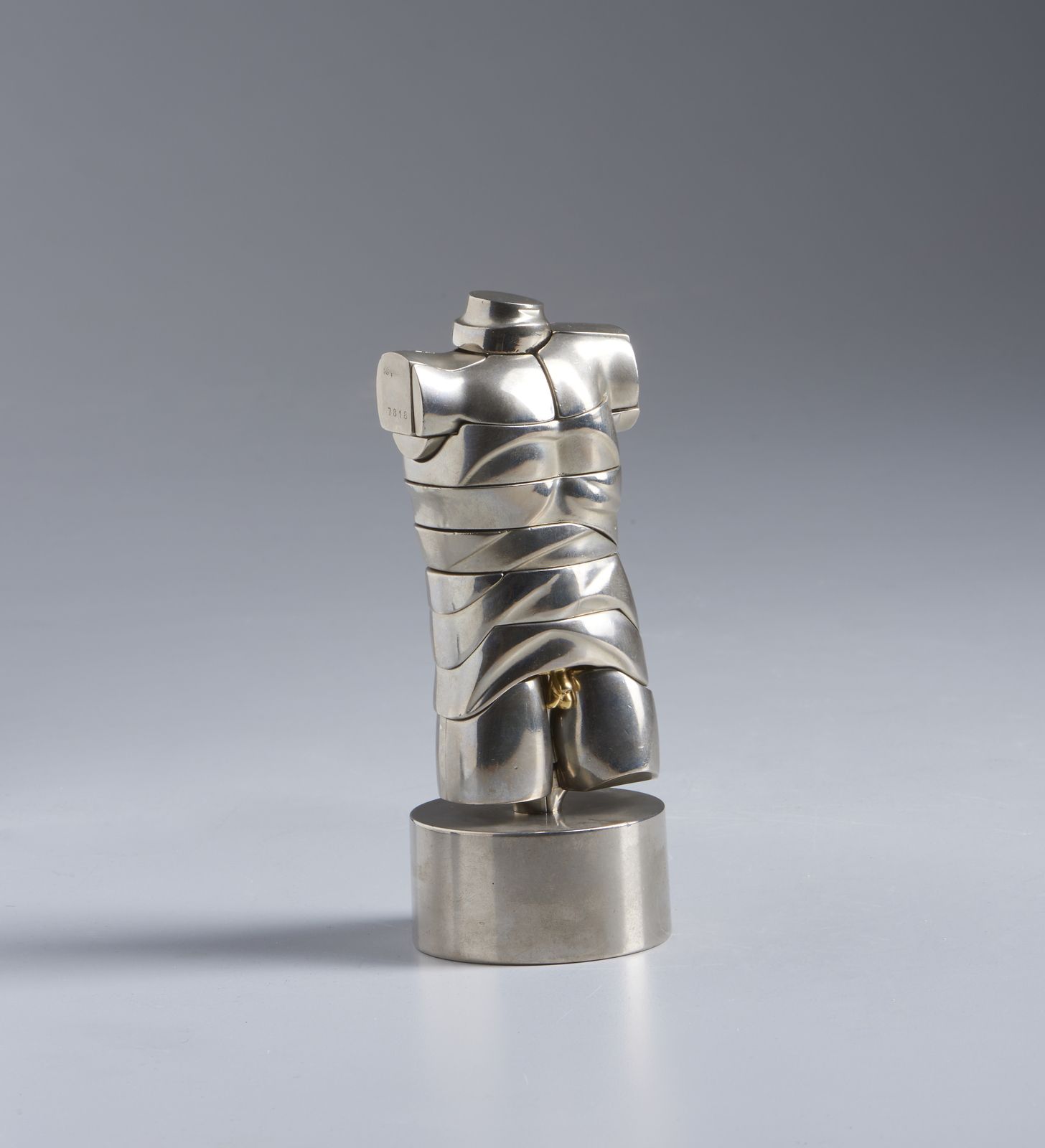 N. 7818. Tiratura e firma in alto a destra a incisione. Dalla serie Micro - Mutiples: scultura smontabile composta da 22 elementi, uno dei quali è un anello in agata verde. Accompagnata dal volume Le Mini-David con istruzioni di montaggio e notizie biografiche. Edizione totale: 10006 esemplari, di cui VI esemplari in oro 18 carati con un timbro speciale per le opere in oro e numerati da I/VI a VI/VI+ 500 esemplari in lega d'alluminio placcati in oro, con una gemma di lapislazzuli nell'anello, numerati da 1/500 a 500/500 + 9500 in lega d'alluminio nichelati numerati da a 501 a 10000 Dimensioni con base: 13.5x5.5x5.5 cm.