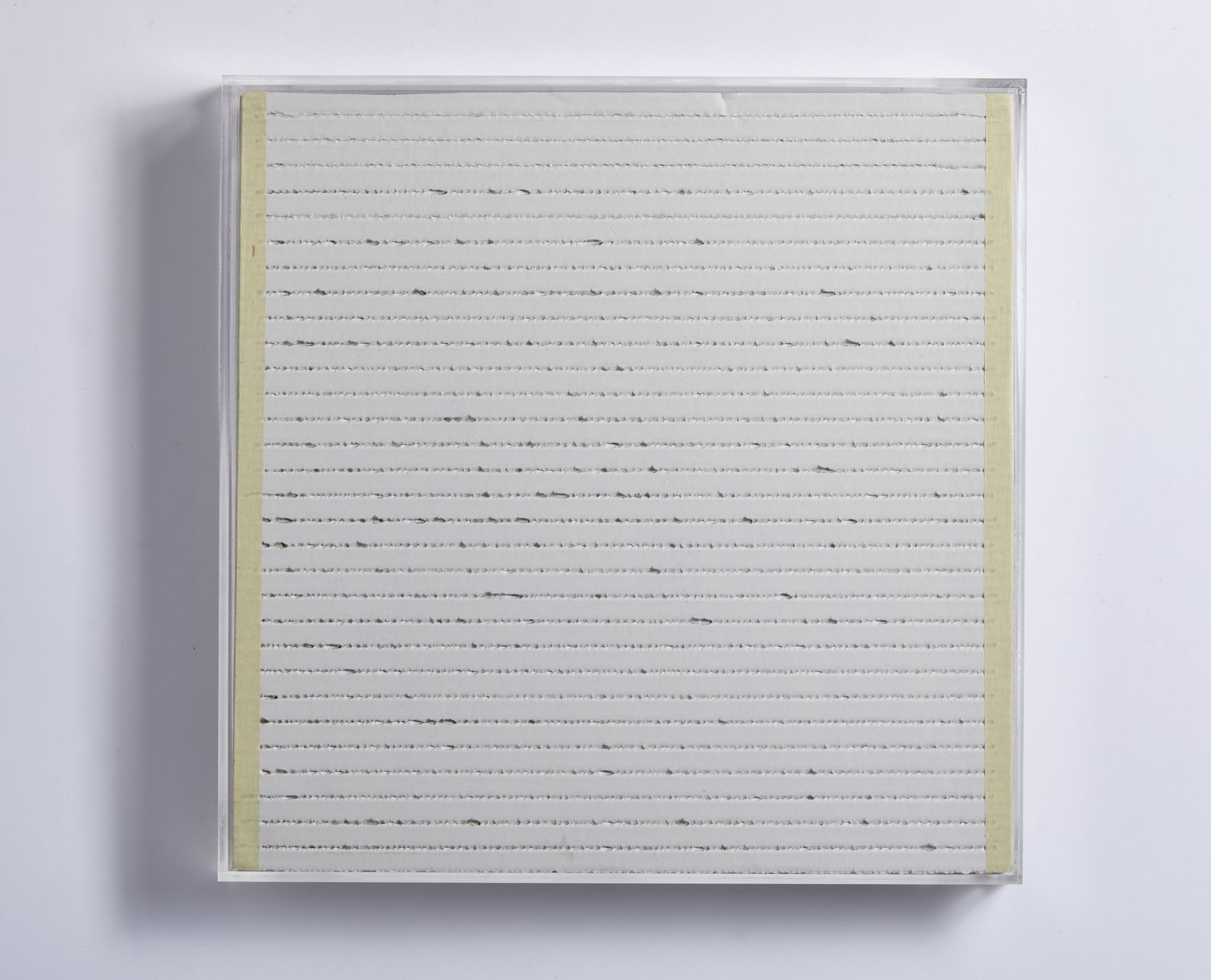 Al retro firma e anno a matita. Autentica dell'artista su fotografia. Entro teca in plexiglass.