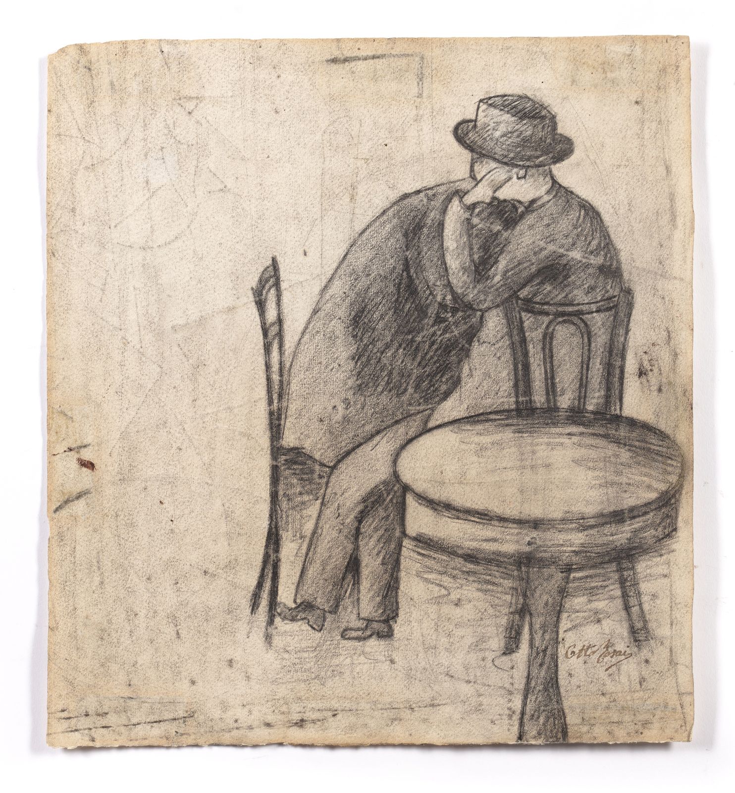 Firma in basso a destra. Studio per dipinto ad olio del 1920/1921 intitolato 'nostalgie'. Autentica a cura di Gianpietro Biasutti (copia). Pubblicazioni: Ottone Rosai, a cura di Piercarlo Santini, Vallecchi Editore, 1960, n. 363. Provenienza: Collezione Luigi Carluccio, Torino. Collezione privata, Chieti. Lievi difetti.
