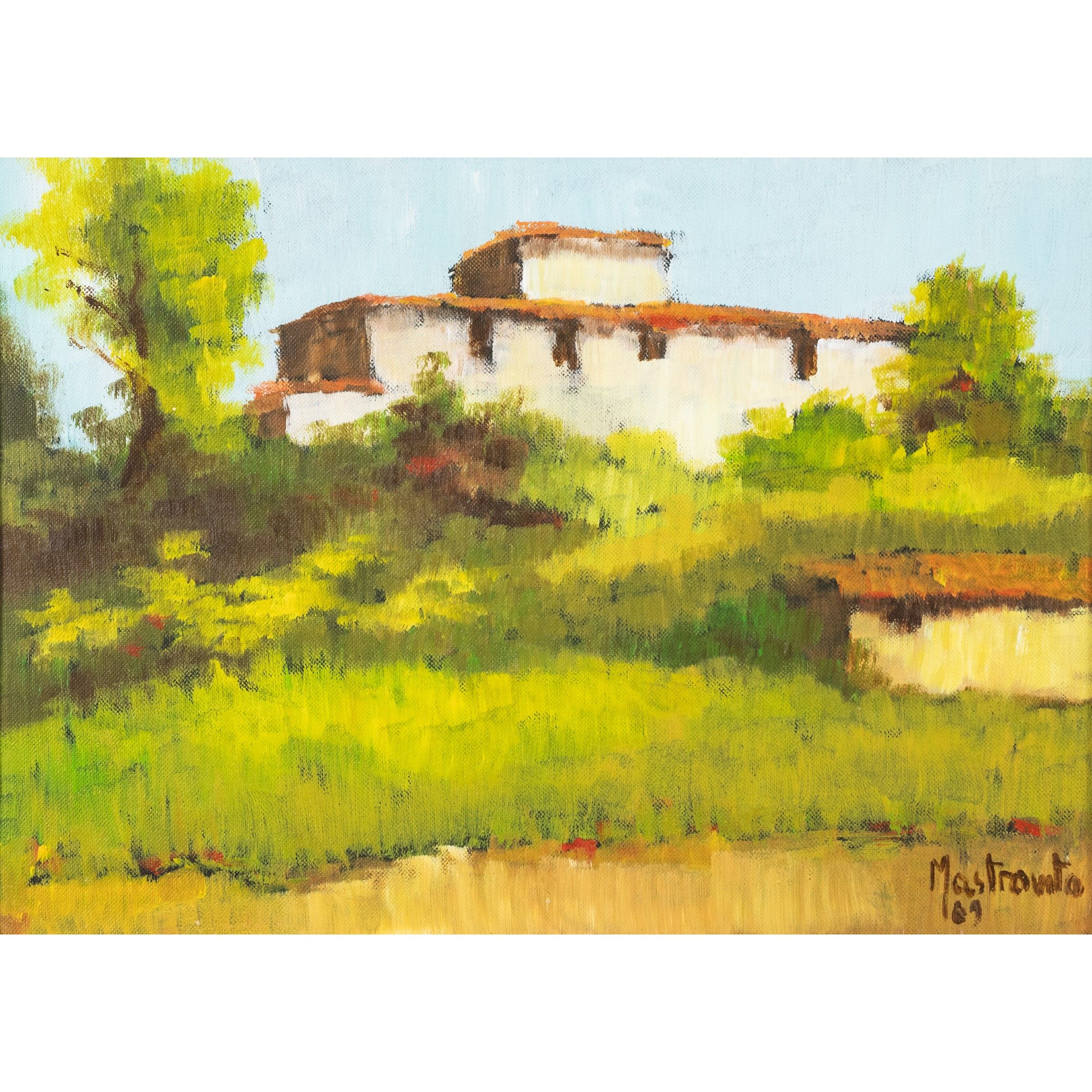 Italia, XX Sec. Paesaggio con casolare, 1989, olio su tela, firmato e datato in basso a destra