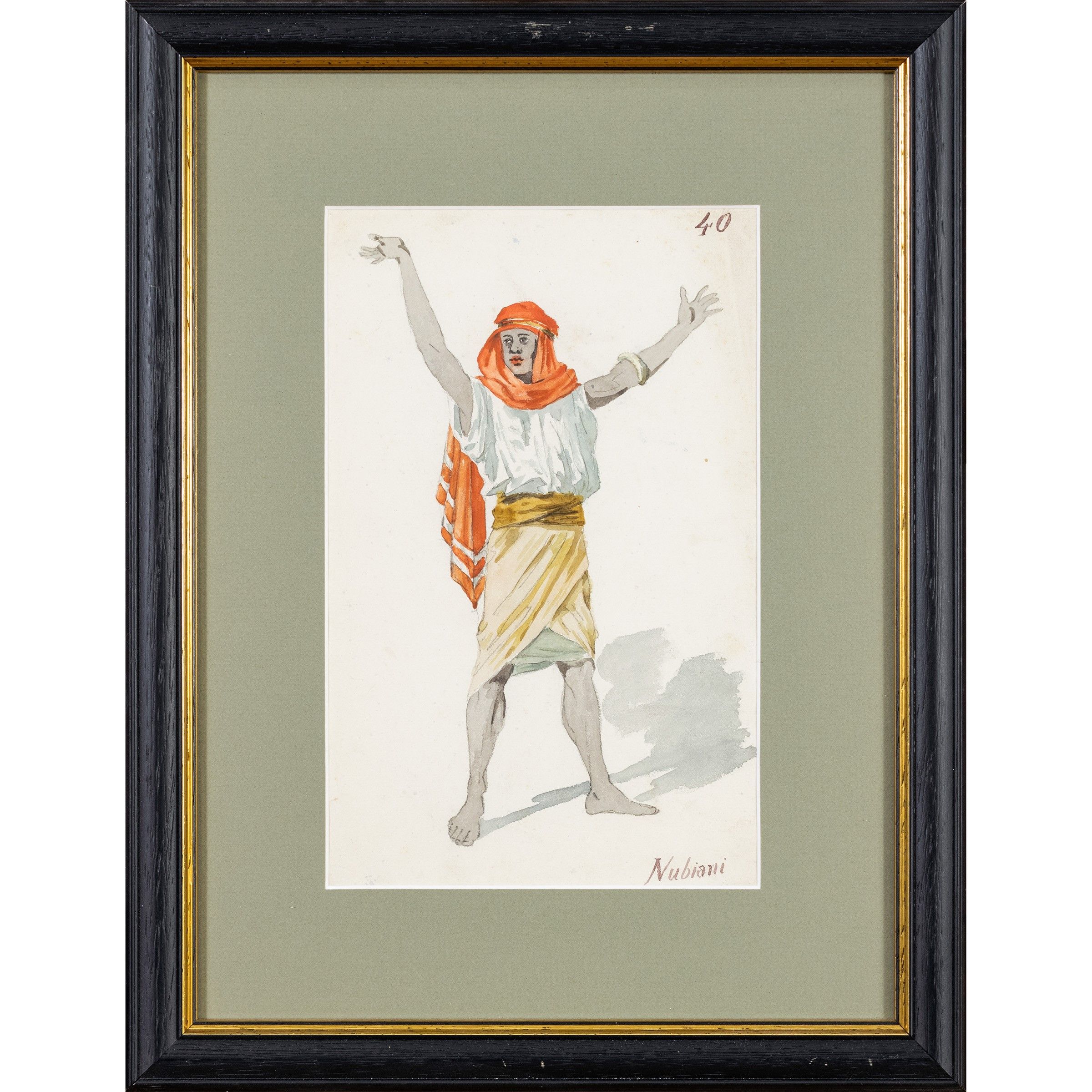 Italia, 1904 circa figurino per la rappresentazione dell'opera Aida di Giuseppe Verdi, tecnica mista su carta, entro cornice